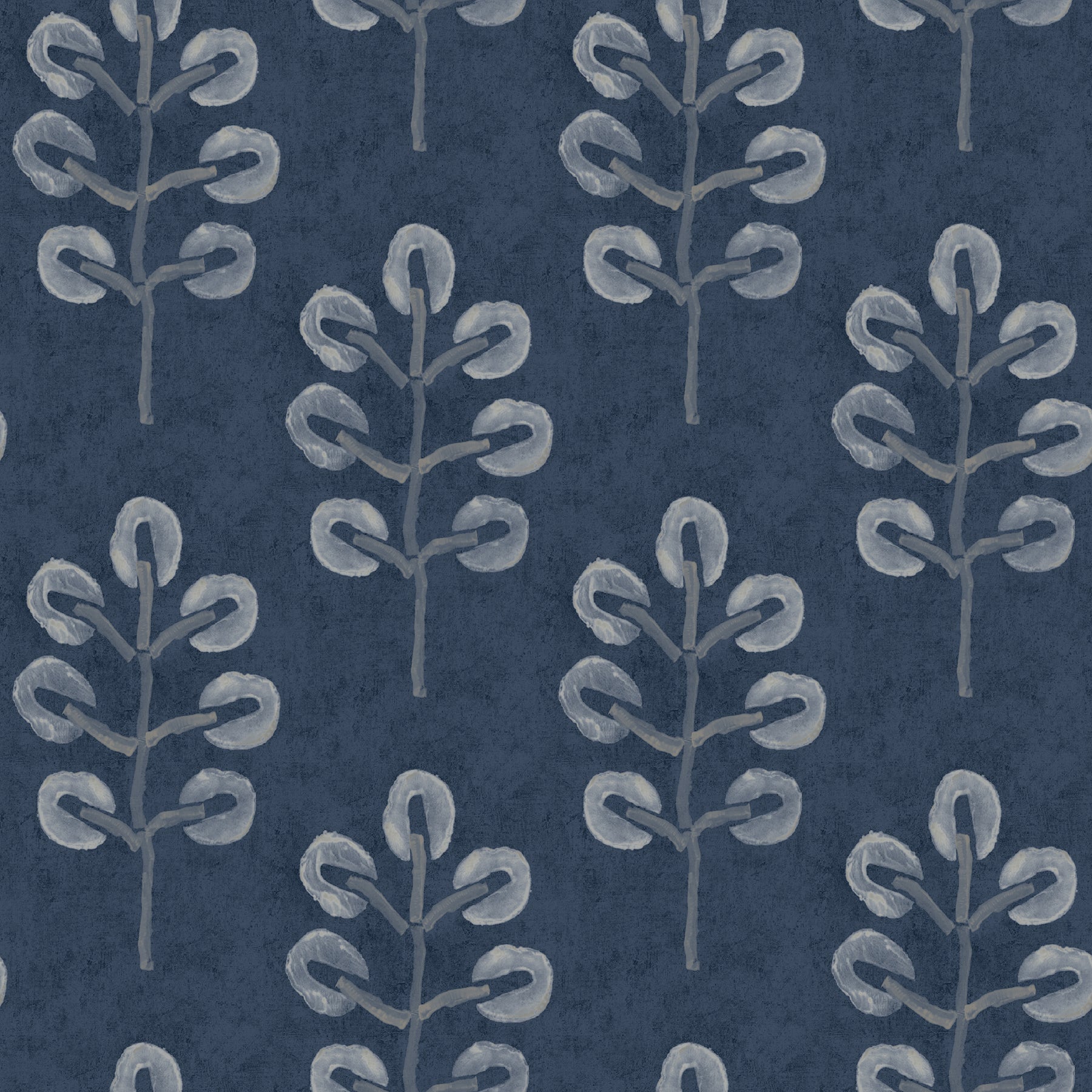 Give your space a fun, botanical accent with this charming block print wallpaper. Simplified plum trees are stamped in white ink across a distressed, deep blue background. Plum Tree is a prepasted, non woven blend wallpaper.