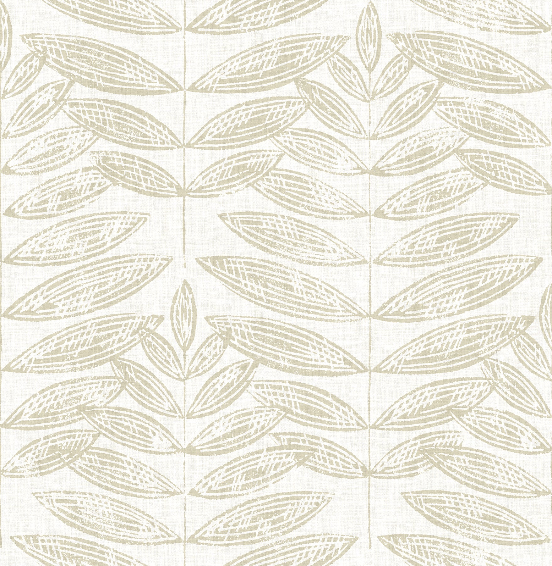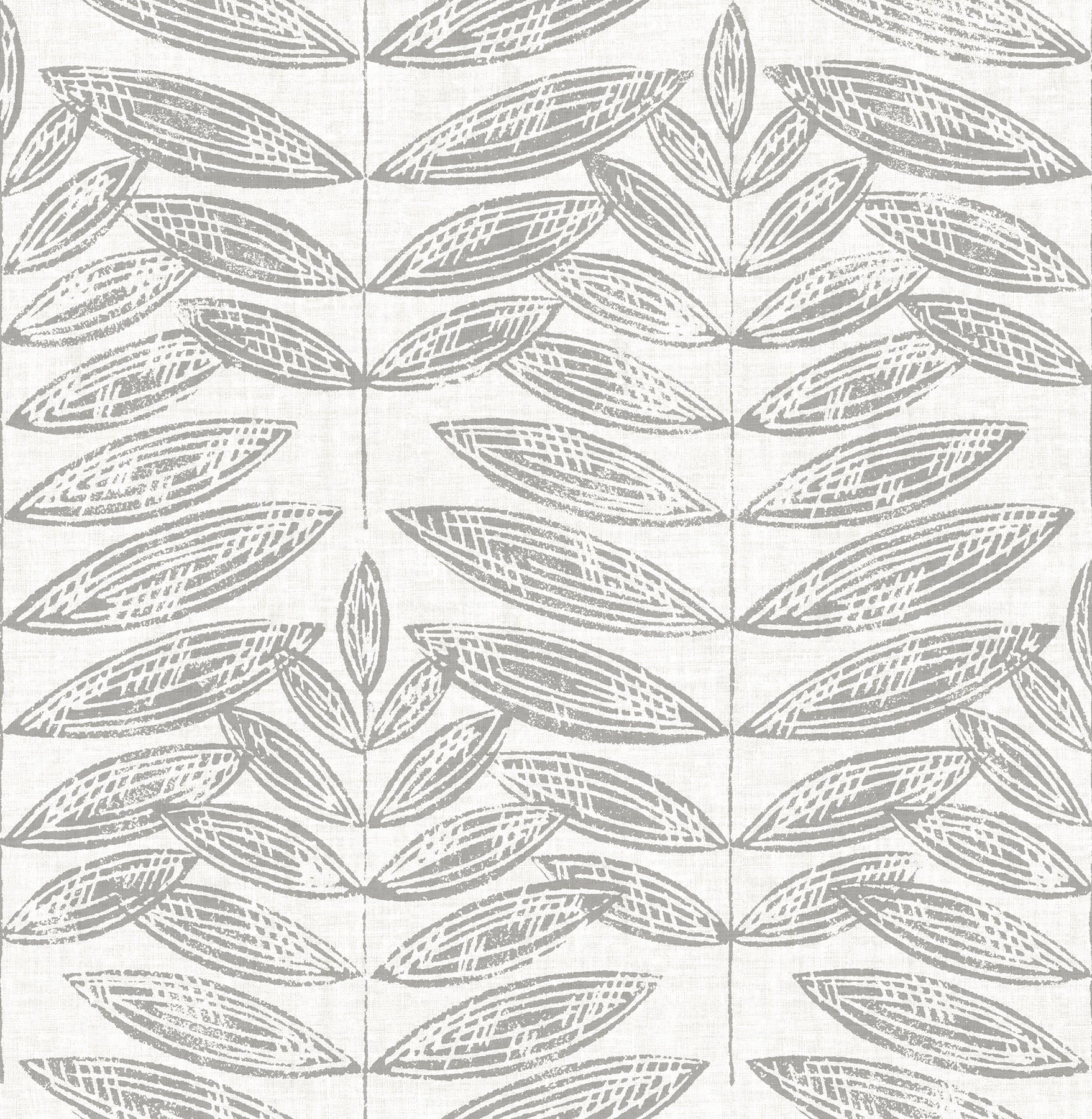 Bring the simple beauty of nature to your walls with this block print wallpaper. Large, fern-like leaves are inked in taupe against a white faux linen background. Akira is an unpasted, non woven wallpaper.