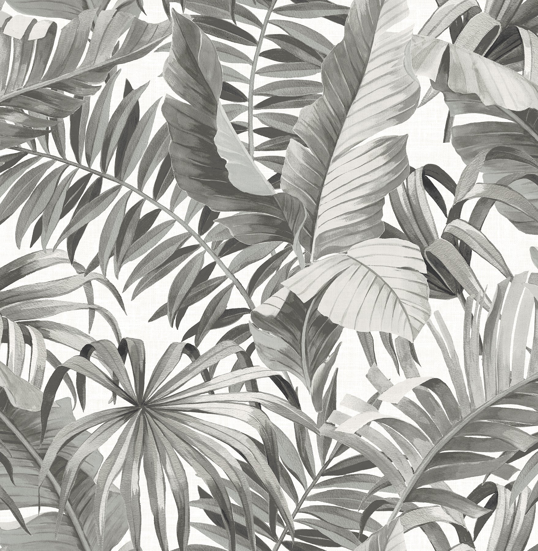 Lush, tropical palms are given a cool blue wash in this botanical wallpaper. The leaves are richly painted in a variety of blues and set against a white faux linen backdrop. Alfresco is an unpasted, non woven wallpaper.