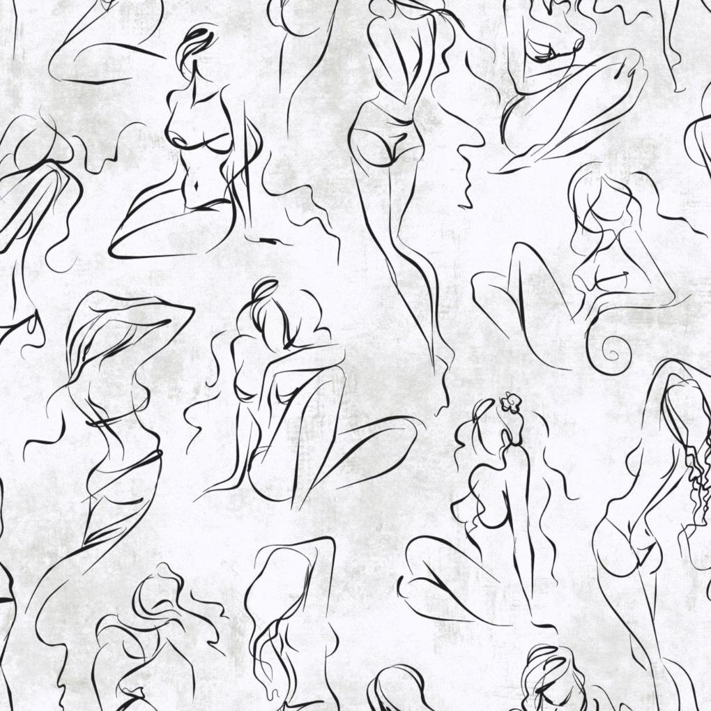 This wallpaper features an elegant and minimalist line art design, depicting abstract female figures in various poses. The design is composed of simple, fluid black lines on a light background, creating a sense of graceful movement and artistic expression. The subtle detailing and soft curves give the wallpaper a sophisticated and contemporary look, perfect for adding a touch of modern elegance to any interior space. Ideal for bedrooms, living rooms, or creative spaces, this wallpaper brings a chic and artistic flair that complements both minimalist and artistic décor styles.
