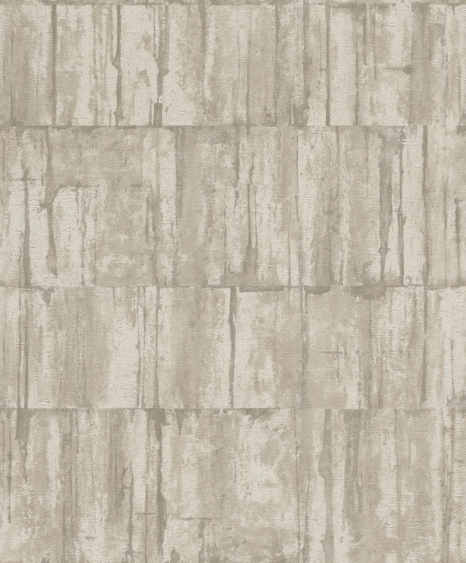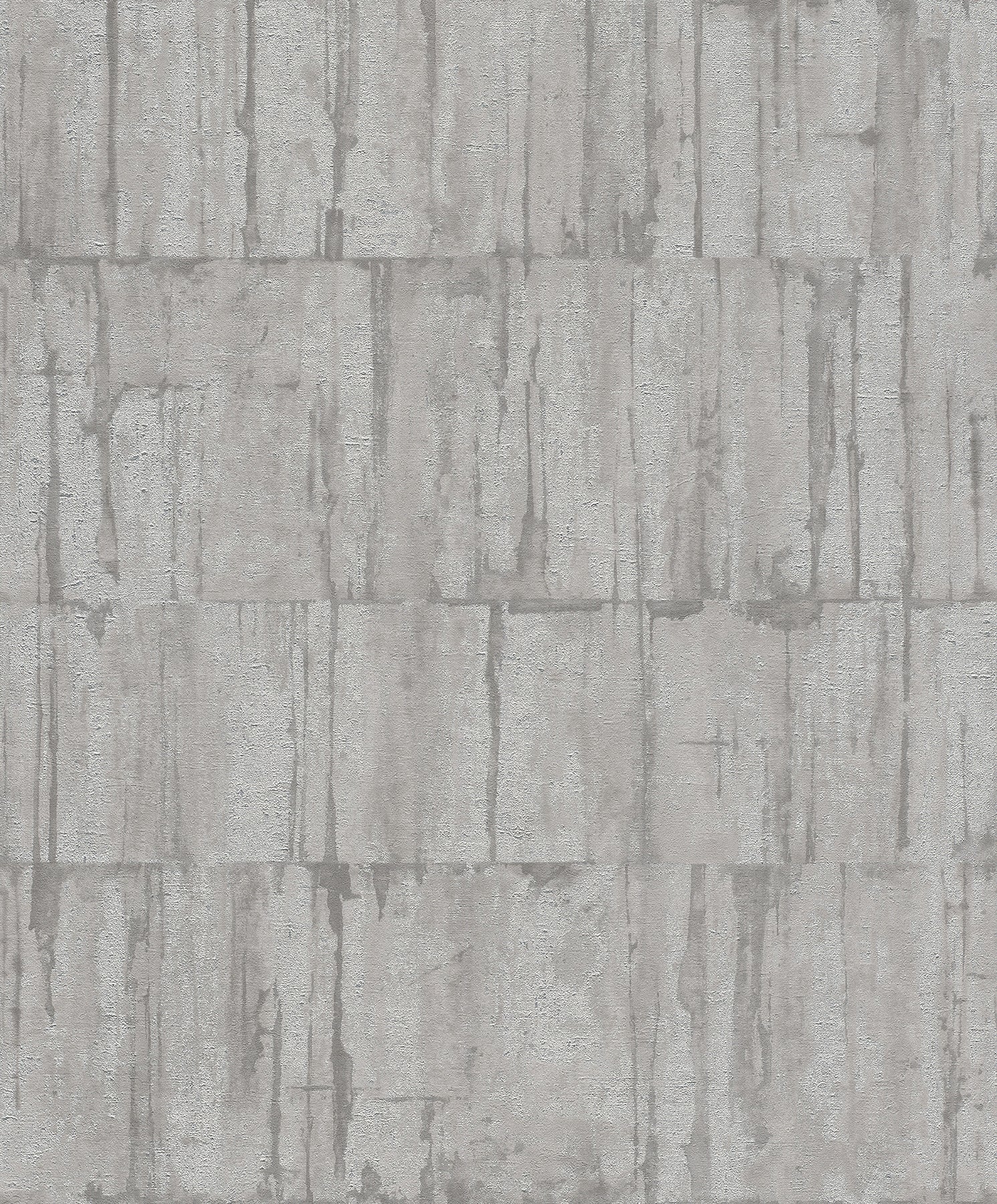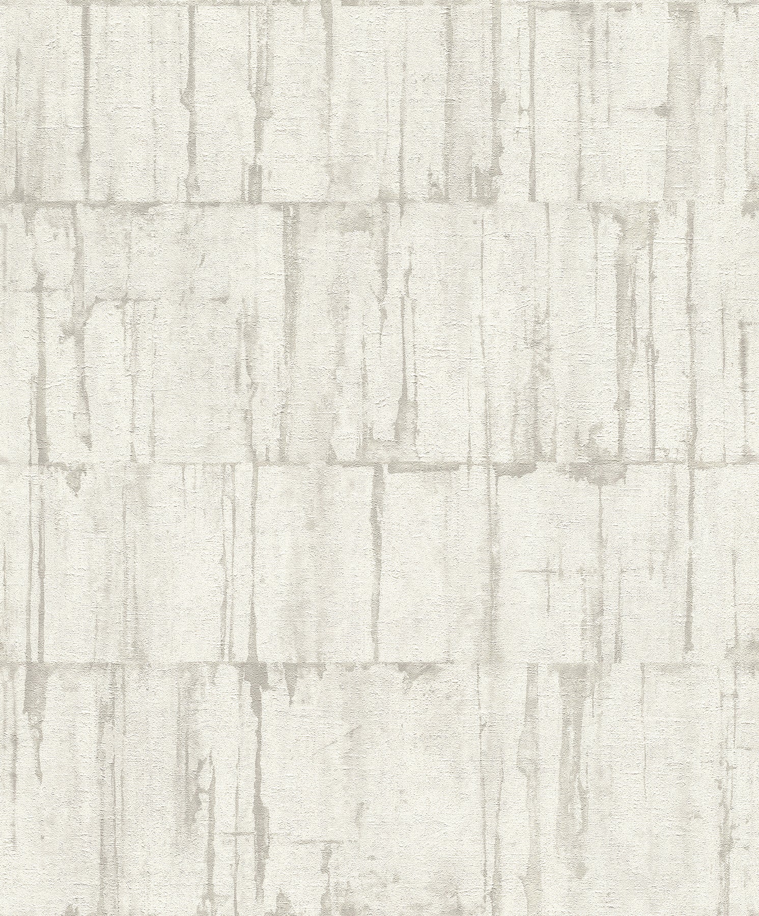 Add chic, industrial dimension to your walls with this textural design. The rough white stripes are broken up by distressed grey sections, a subtle metallic finish adding a pearlescent glow to this wallpaper. Buck is an unpasted, non woven wallpaper.