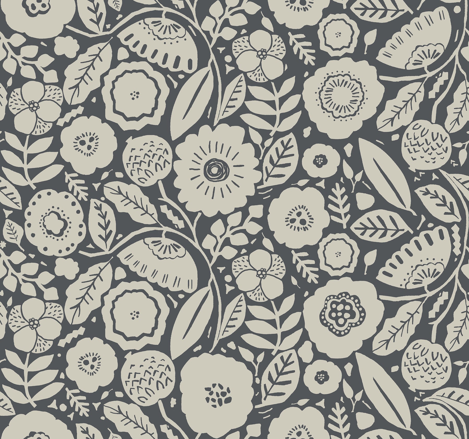 The charm of Camelia Blossomís petals, stems, and leaves lend elegance to the simplicity of this artistic rendition of a timeless tropical flower, shown in charcoal grey and almond cream. This Camille Blossom Wallpaper measures approximately 27 inches wide by 27 feet long, measuring approximately 60.8 square feet per roll. A retrospective from the private collections of Christiane Lemieux featuring global, artistic, and†handcrafted designs.