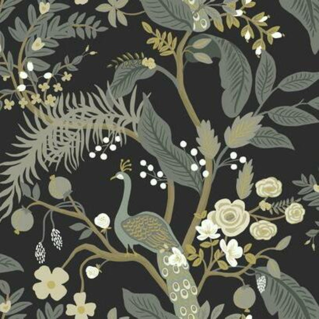 In this modern take on traditional chinoiserie motifs by Rifle Paper Co., magnificent peacocks perch on winding branches, surrounded by bright blooming flowers and emerald leaves. This Peacock Wallpaper measures approximately 27 inches wide by 27 feet long, covering About 60.8 square feet per roll. Durable and easy to remove from primed walls, this friendly to hang unpasted nonwoven wallpaper is created with a special blend of synthetic fibers, making it both easy to hang and tear resistant.