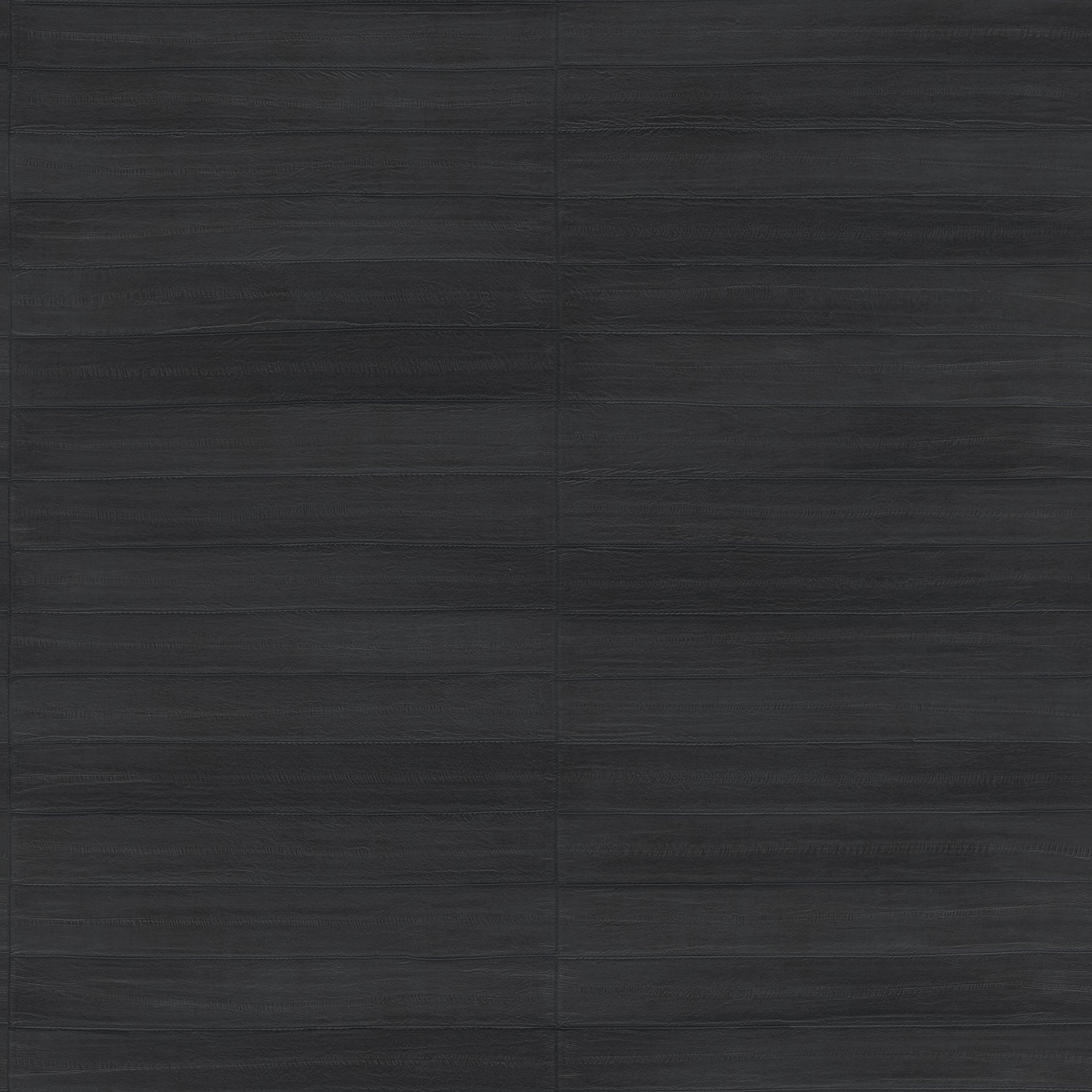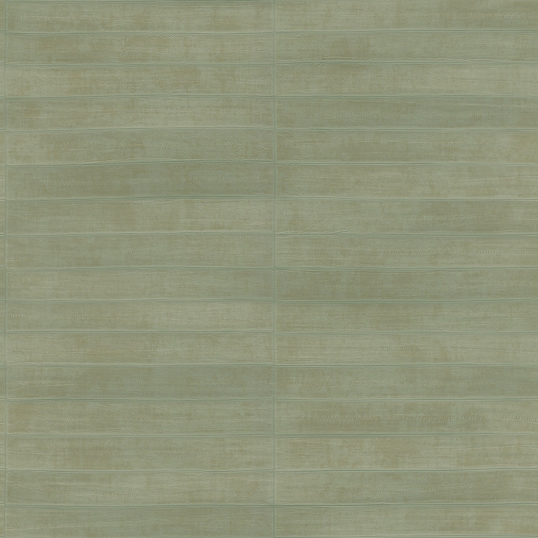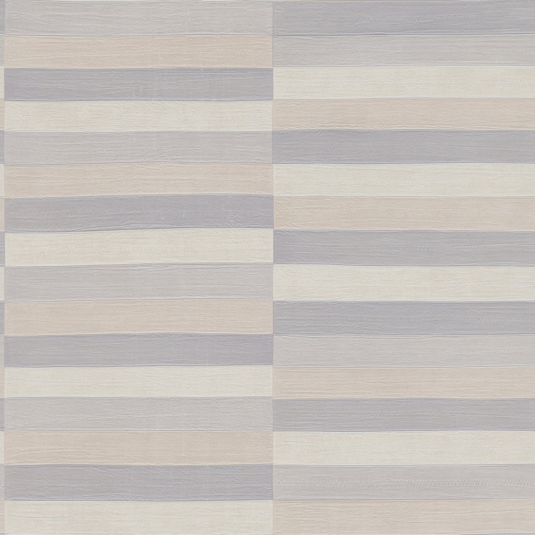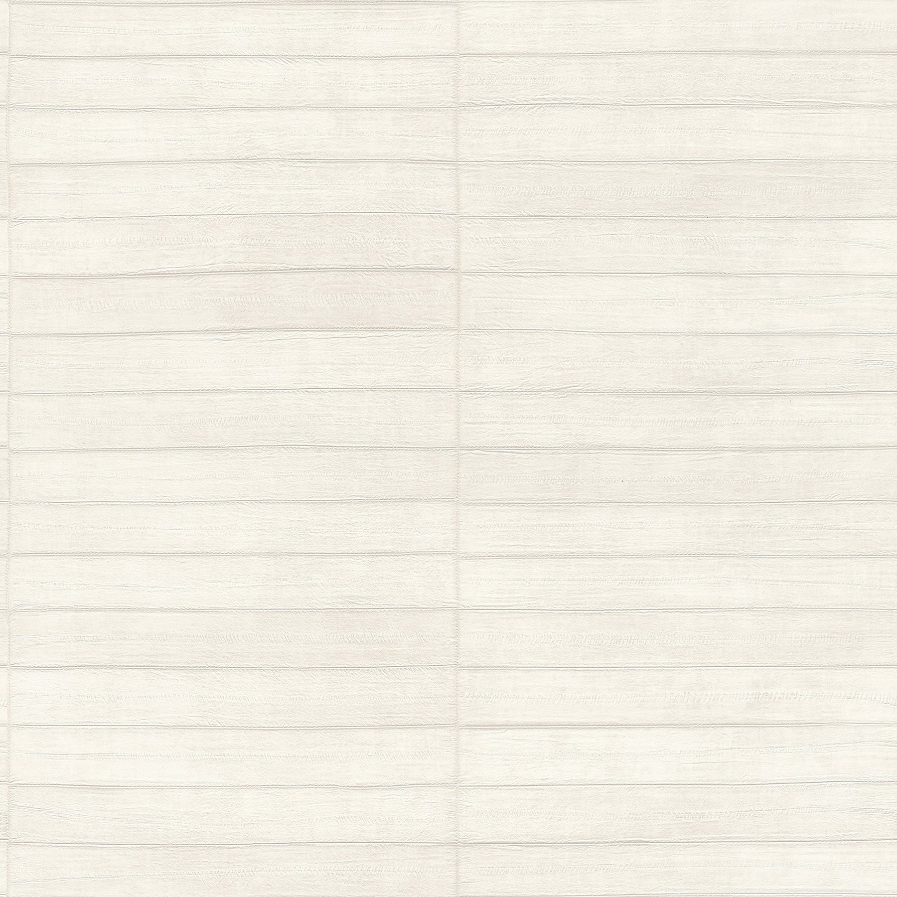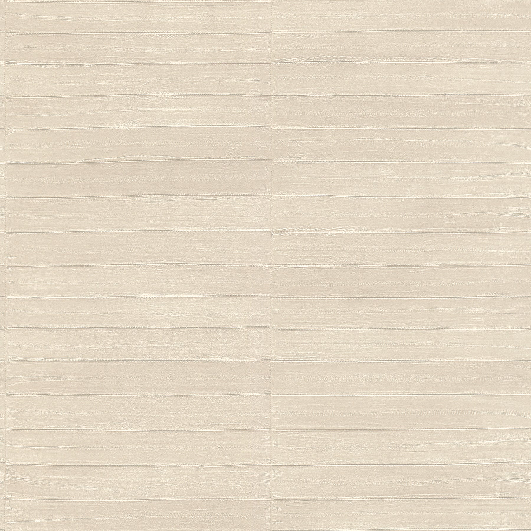 This monotone leather stripe wallpaper brings subtle dimension and a polished finish to your walls. The ivory hue has a slight pearlescent sheen and each stripe is embellished with a singular, thin strip of raised ink dashes. Dermot is an unpasted, vinyl on non woven wallpaper.