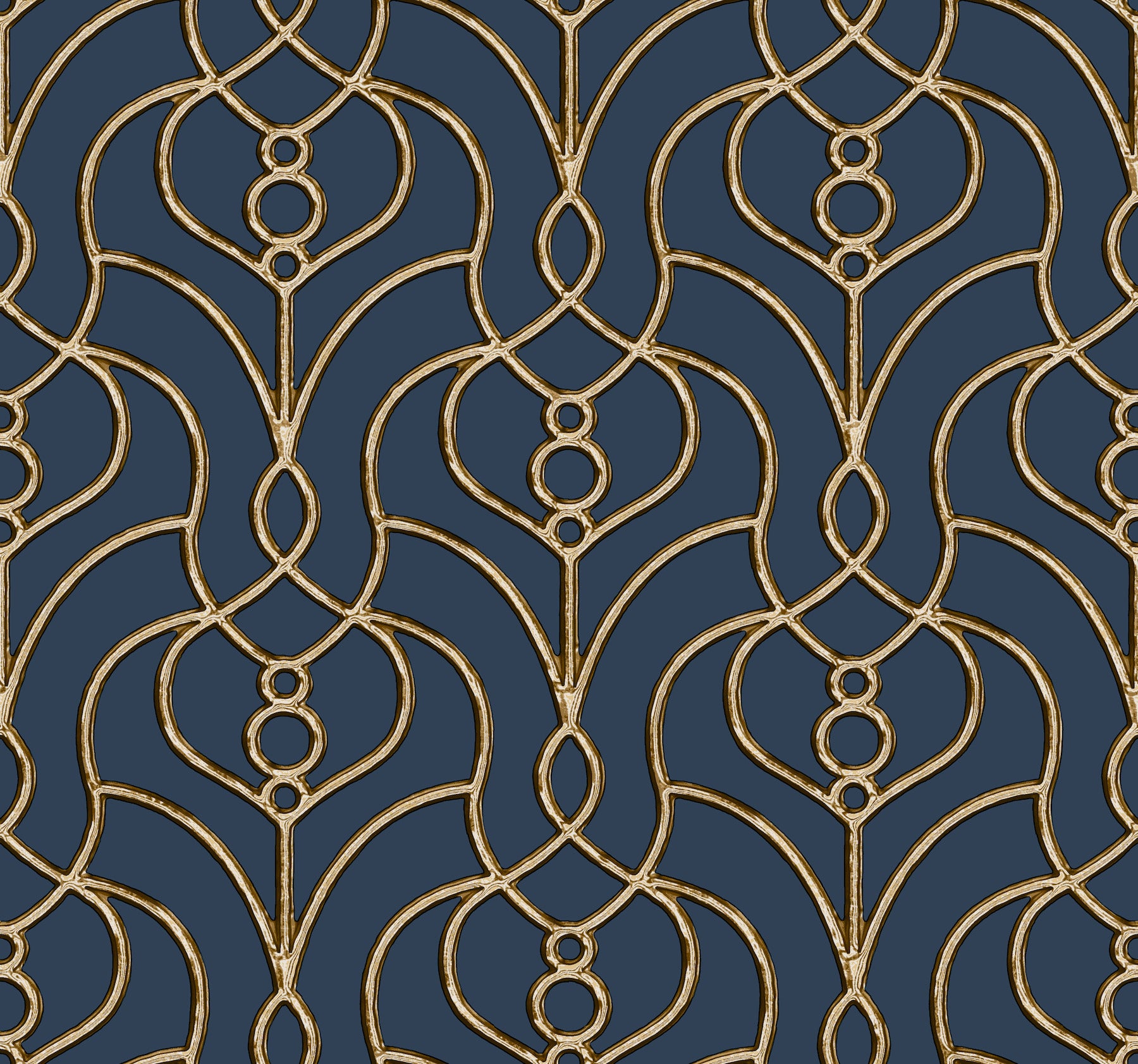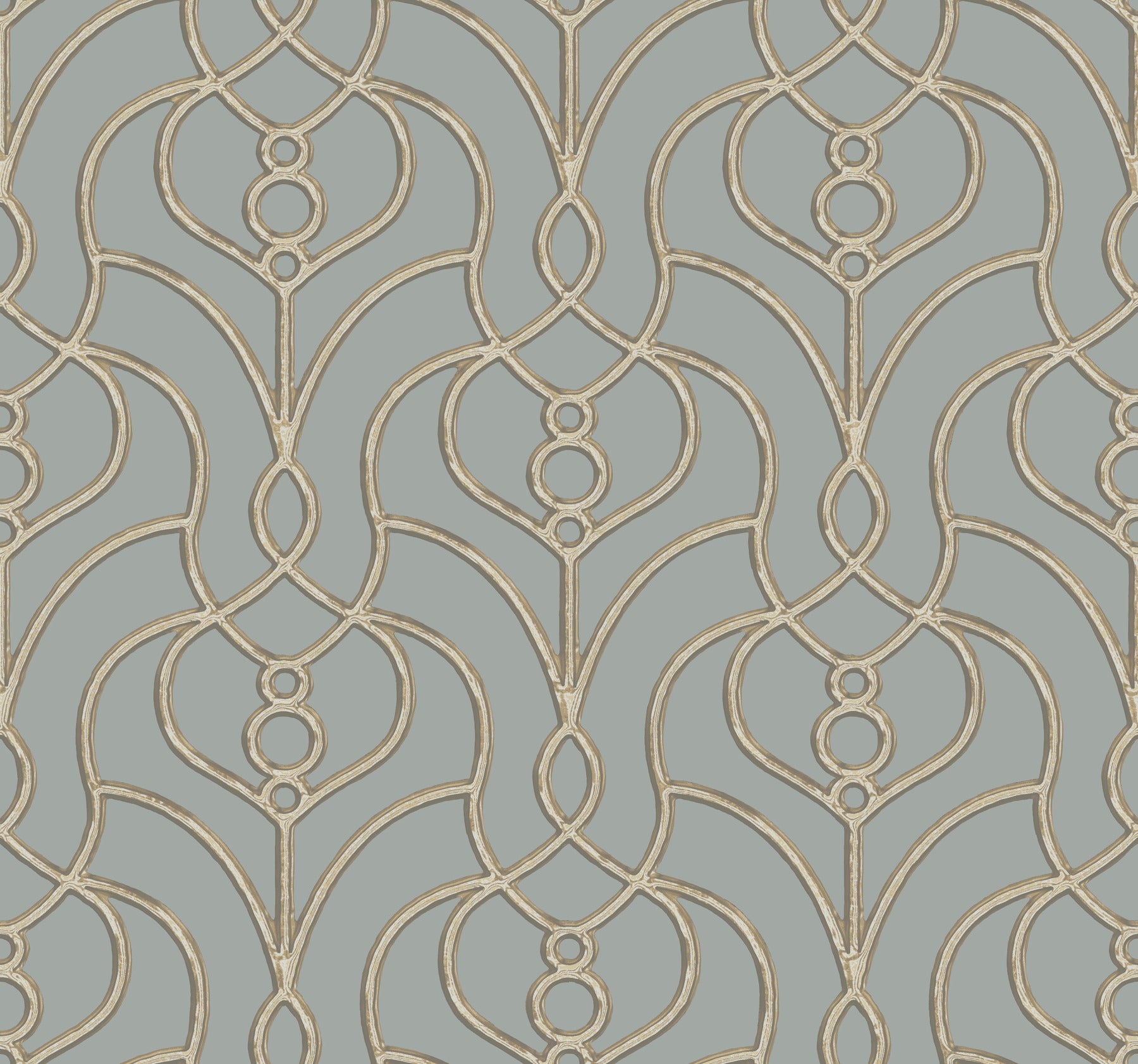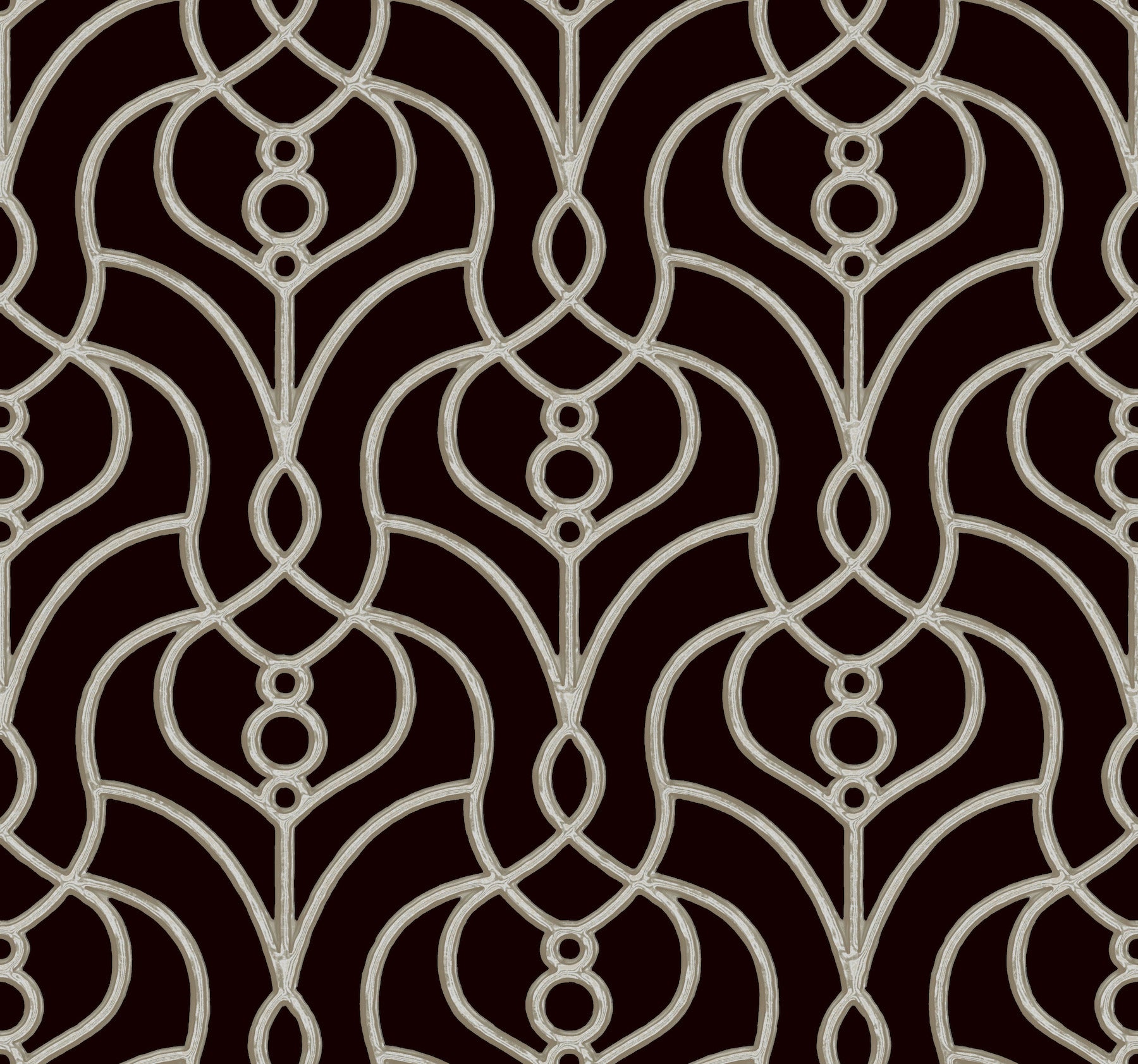Inspired by a torc necklace, the sinuous silver strands of Divine Trellis gain an additional sense of jeweled affluence with an inky black backdrop. This Divine Trellis Wallpaper measures approximately 27 inches wide by 27 feet long, measuring approximately 60.8 square feet per roll. Organic simplicity and lustrous adornment for the modern home.