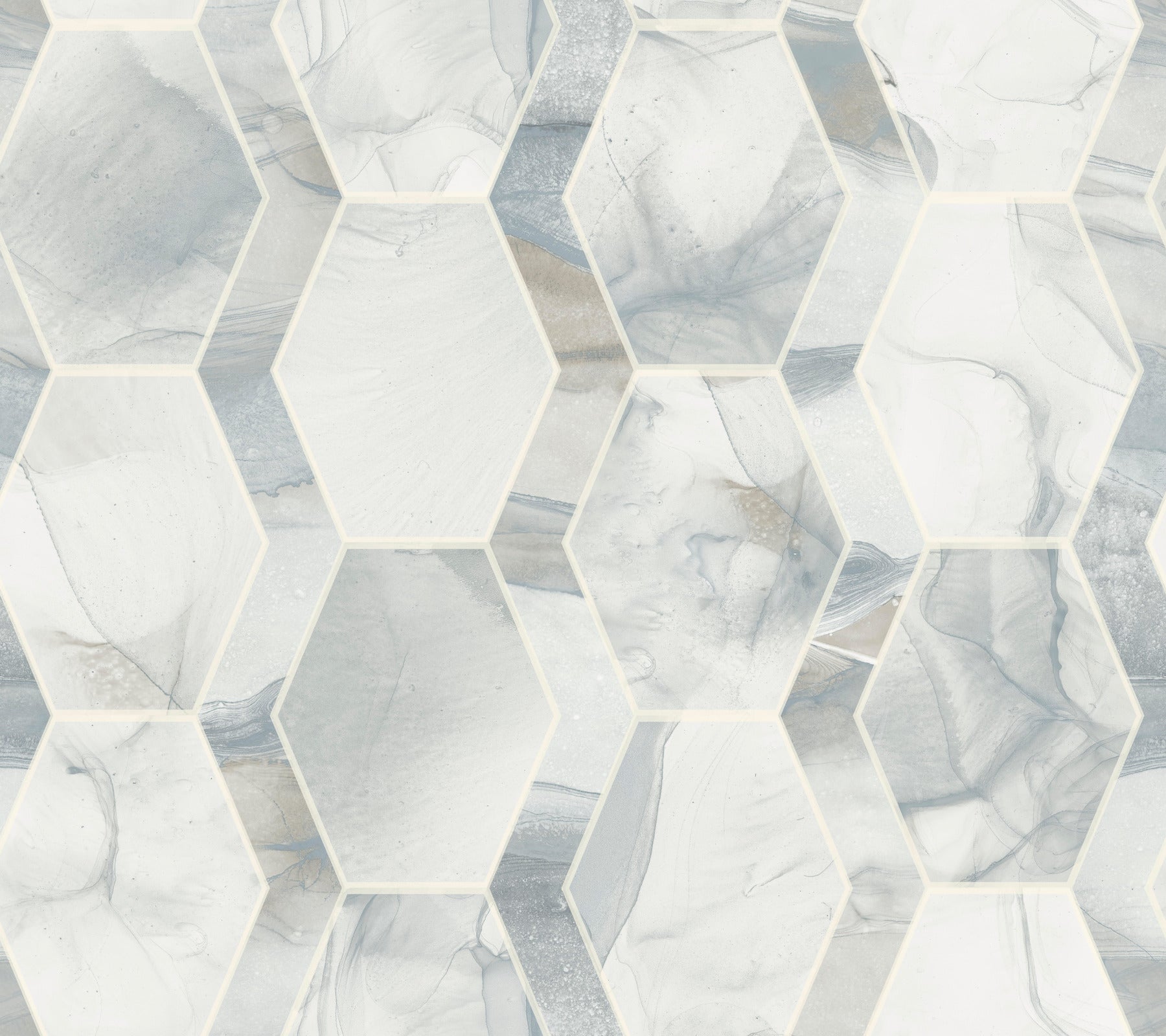 Minerals and marble create a distinctive, natural hexagon tile in pattern Earthbound. This Earthbound Wallpaper measures approximately 27 inches wide by 27 feet long, covering About 60.8 square feet per roll. Durable and easy to remove from primed walls, this friendly to hang unpasted nonwoven wallpaper is created with a special blend of synthetic fibers, making it both easy to hang and tear resistant.