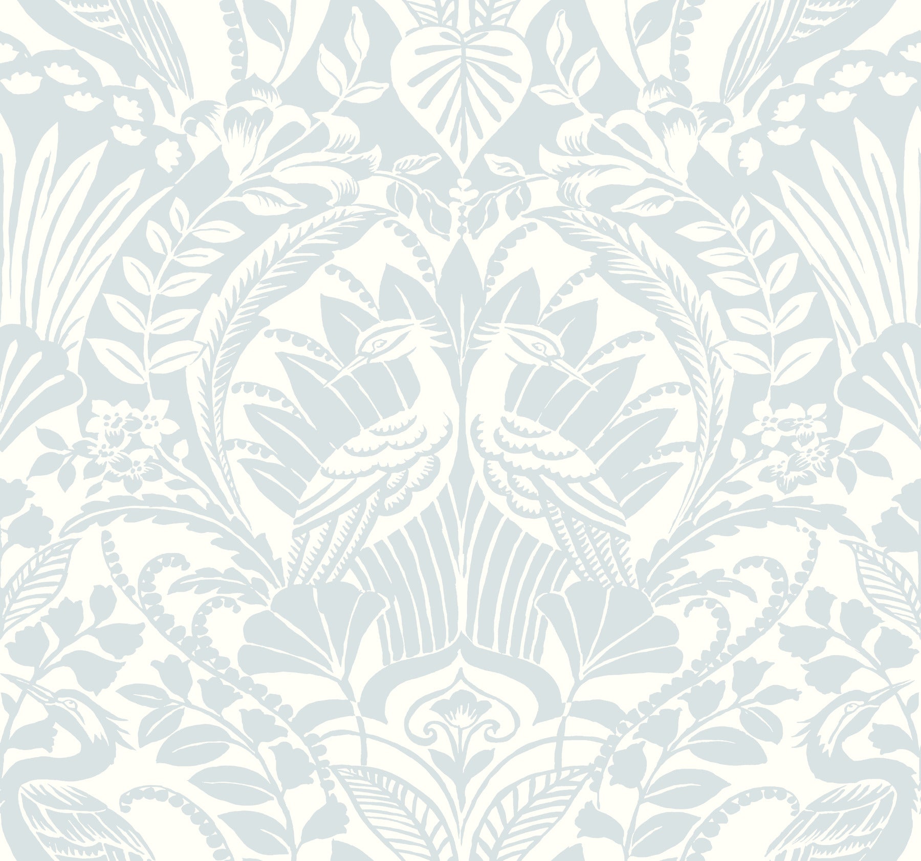 A bird medallion, surrounded with expressive botanicals and leaves, creates a fresh approach to classic style in pattern Egret Damask. This Egret Damask Wallpaper measures approximately 27 inches wide by 27 feet long, covering About 60.8 square feet per roll. Manufactured on Sure Stripô, a unique high performance substrate, this ultra-easy removable wallpaper is guaranteed easy to install and easy to remove; simply use water to activate.
