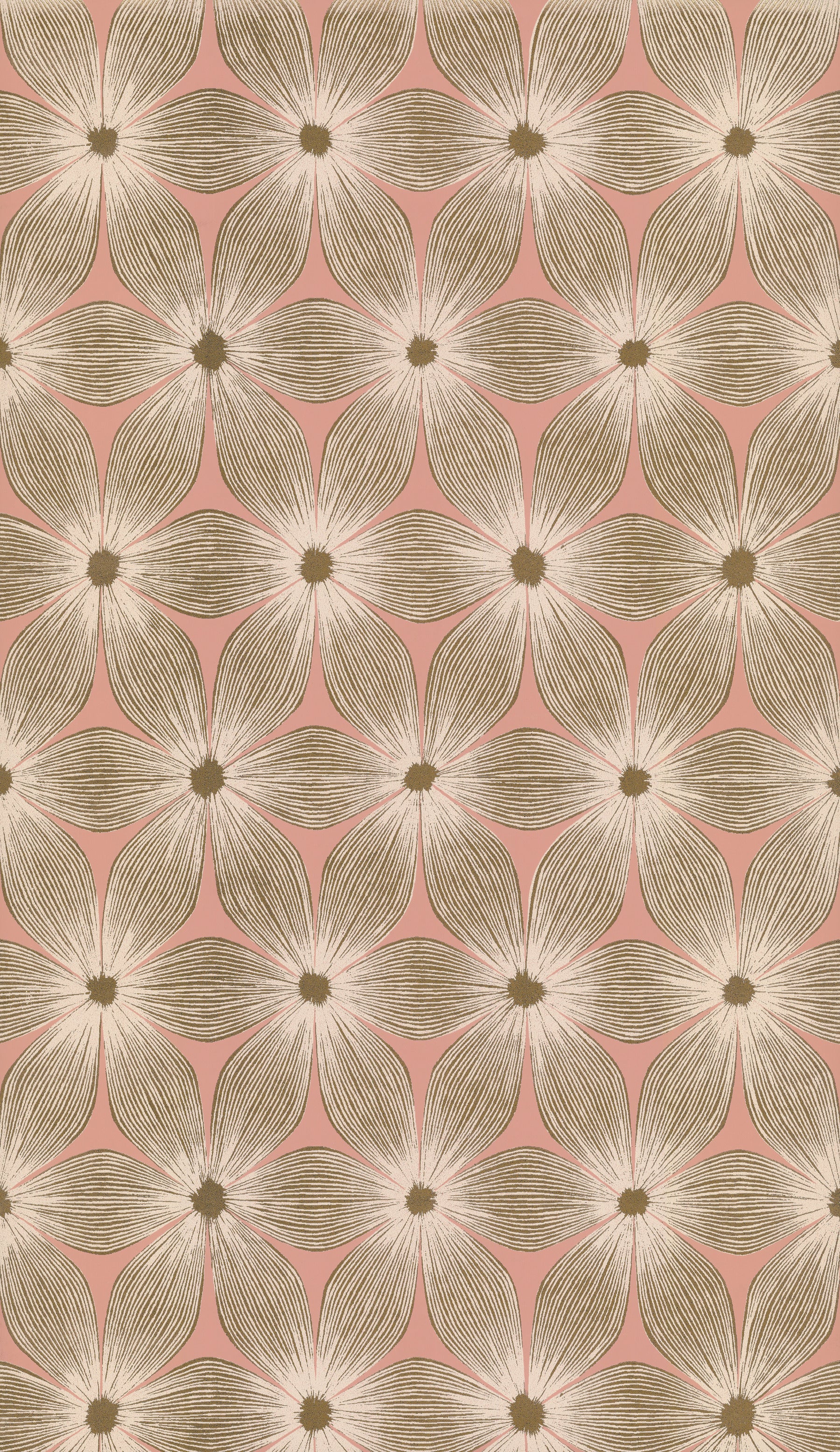 Oversized blossoms, like wildflowers, form an interlocking design against a solid background. The daisy-like blooms have a glistening finish thanks to the metallic inks on Everlasting Wallpaper. This Everlasting Wallpaper measures approximately 21 inches wide by 33 feet long, covering About 57.8 square feet per roll. Durable and easy to remove from primed walls, this friendly to hang unpasted nonwoven wallpaper is created with a special blend of synthetic fibers, making it both easy to hang and tear resistant.