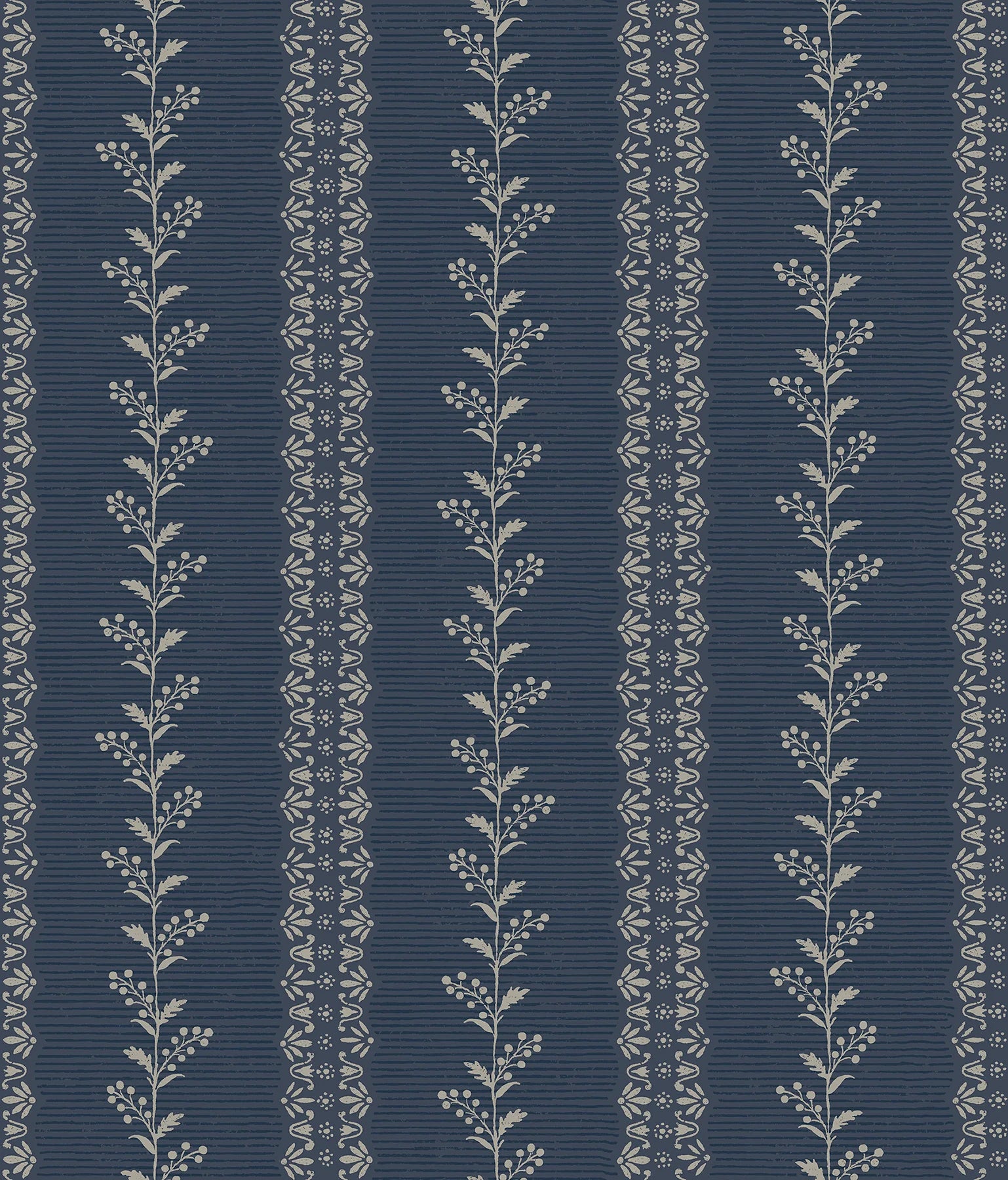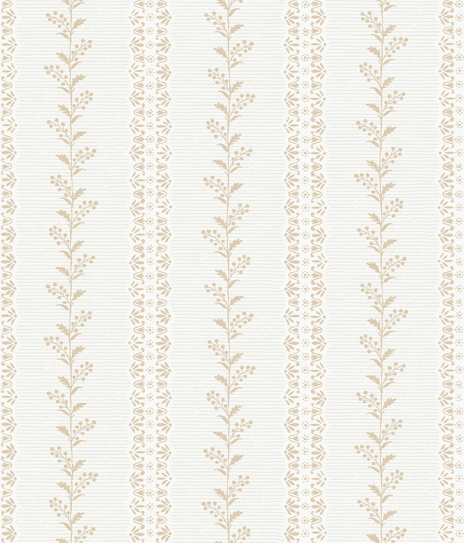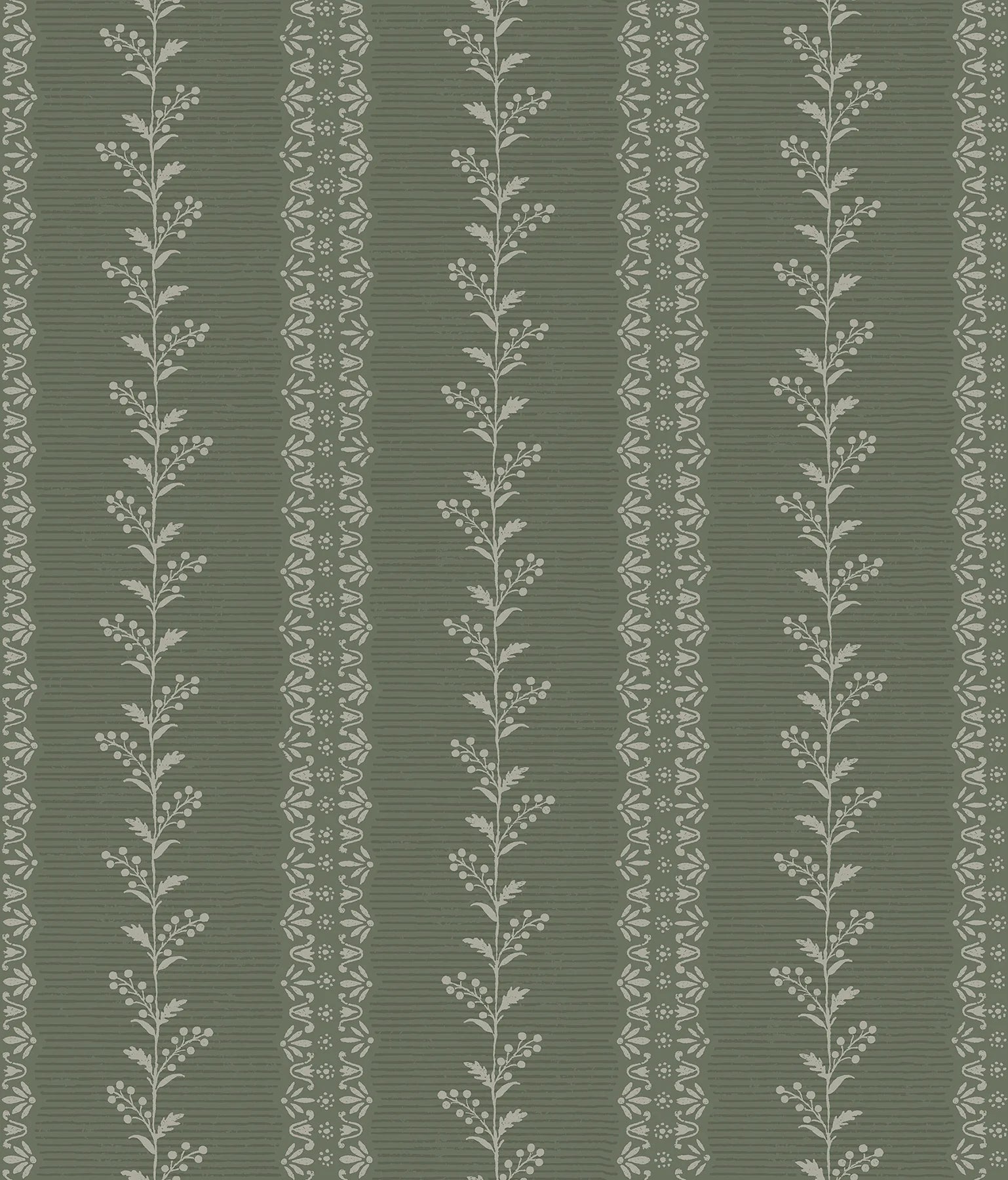 An elevated striped design with nods to nature. Wide columns of delicately lined detailing are overlaid with climbing, berry-laden vines and floral stamps for a scalloped interlude. Featuring a simple palette of grey and white. This Everleigh Wallpaper measures approximately 20.5 inches wide by 33 feet long, measuring approximately 56.4 square feet per roll. This collection of timeless wallcoverings is layered with warmth and charm, and effortlessly blends nostalgic patterns with modern designs.†This assortment has a little bit of everythingósimple stripes, subtle plaids, vintage motifs, and bold florals.