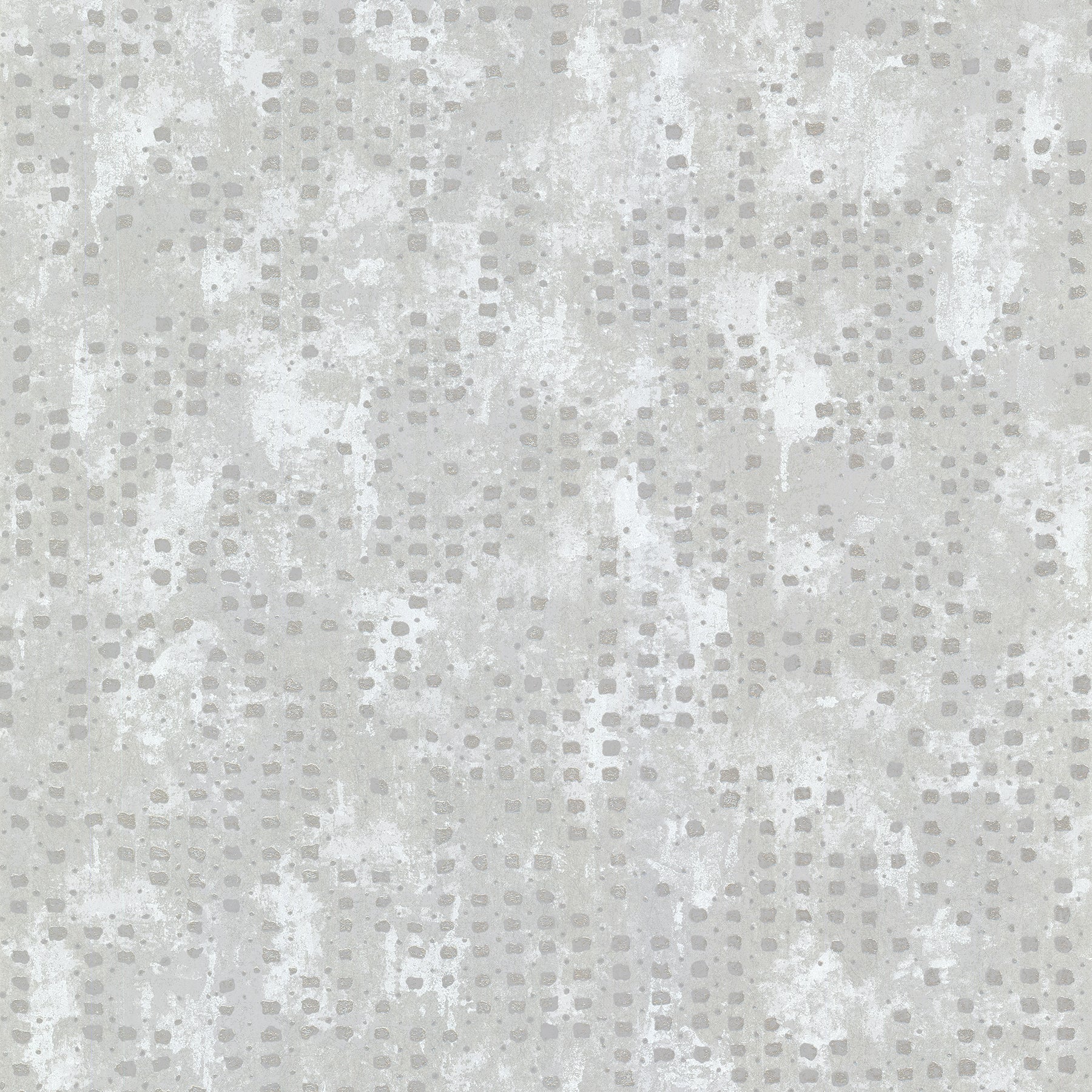 Bring dimension and texture to your walls with this sophistication geometric design. The mottled grey backdrop is studded with square raised ink blots, the white ink infused with a subtle pearlescent finish. Felsic is an unpasted, non woven wallpaper.