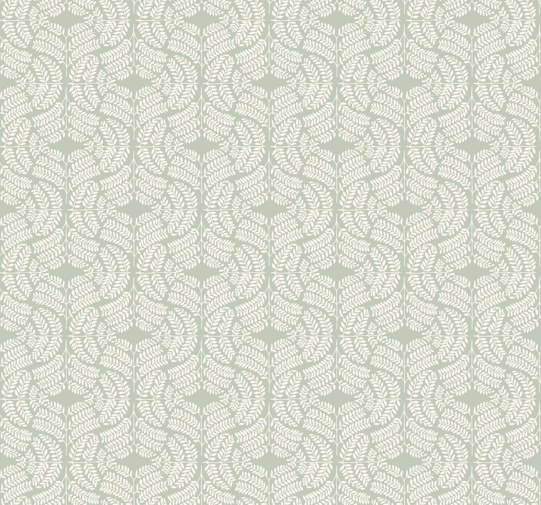 Gracefully curved, leafy sprigs form large square designs in raised ink on contrasting solid color. This is Fern Tile Wallpaper. This Fern Tile Wallpaper measures approximately 27 inches wide by 27 feet long, covering About 60.8 square feet per roll. Manufactured on Sure Stripô, a unique high performance substrate, this ultra-easy removable wallpaper is guaranteed easy to install and easy to remove; simply use water to activate.
