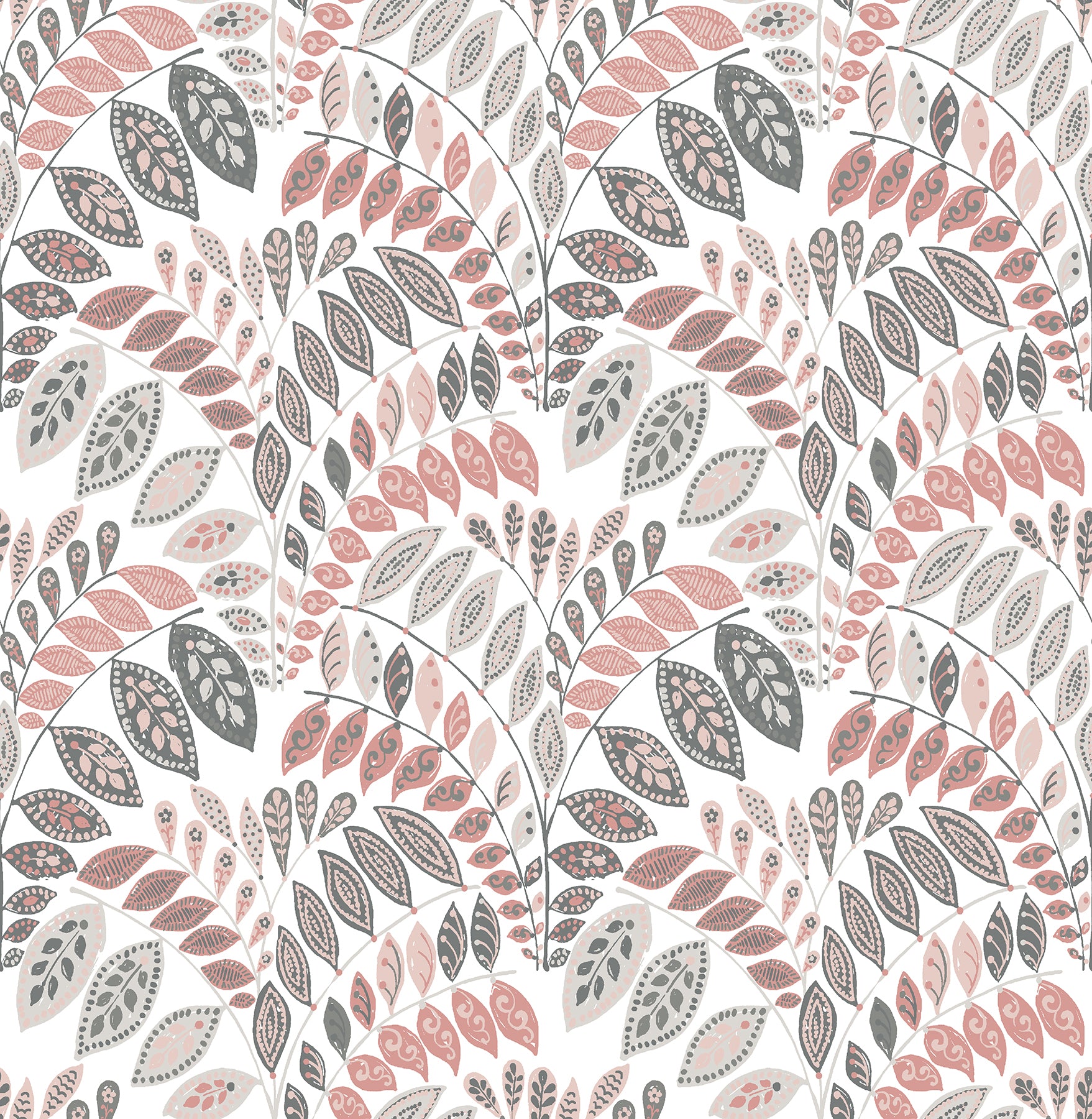 Beautiful rose, blush and charcoal leaves spring from furling fronds in this whimsical design. With intricate geometric accents, this Scandinavian wallpaper has a contemporary edge. Fiddlehead is an unpasted, non woven wallpaper.