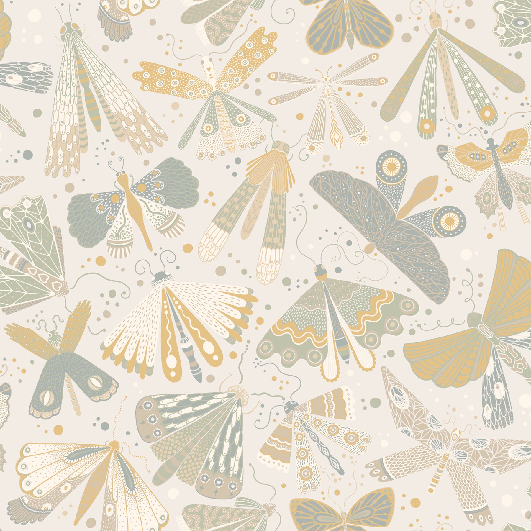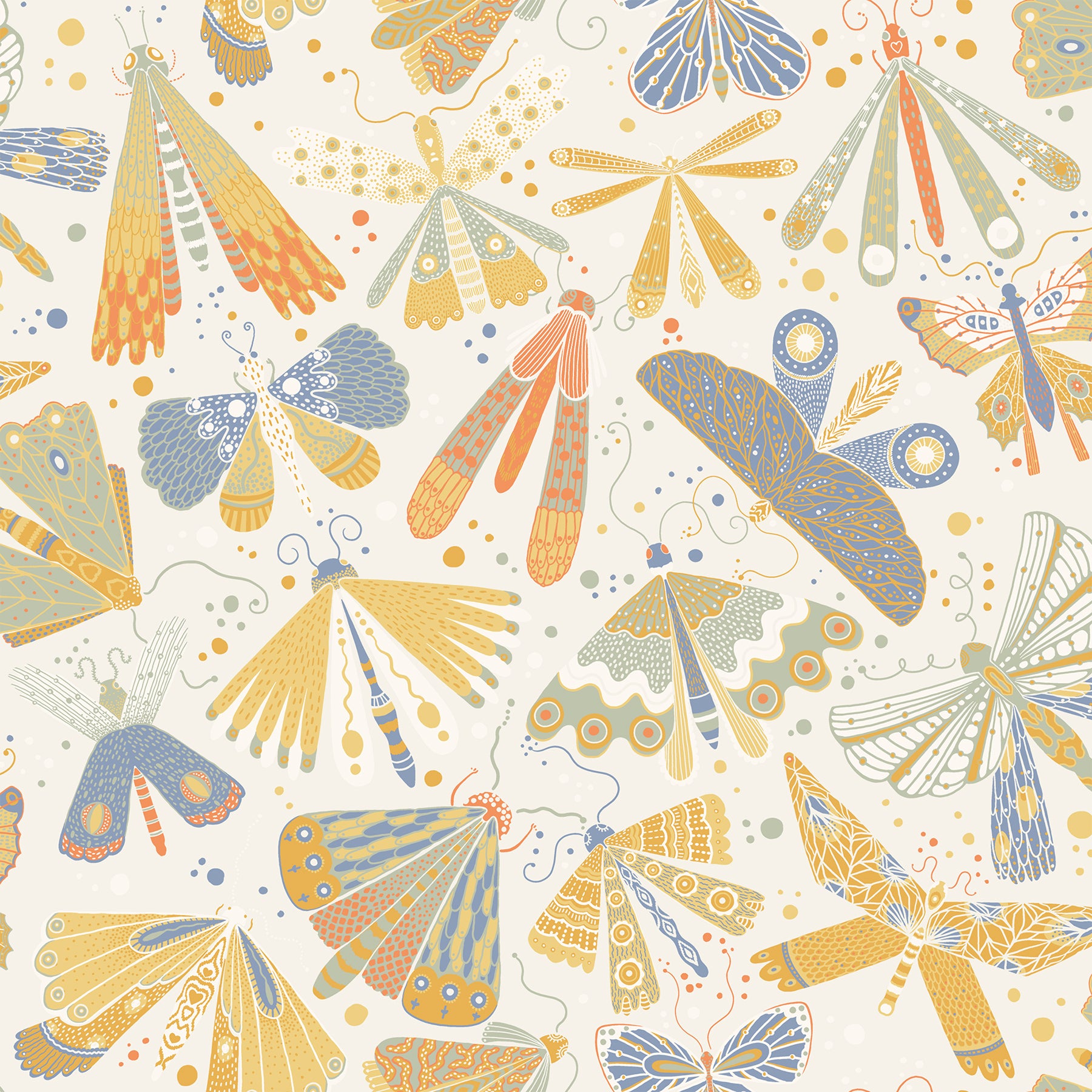 Bring a touch of magic to your interiors with this nostalgic butterfly wallpaper. These delicate winged creatures are whimsically patterned in warm pinks, oranges, yellows and blues, richly offset by a dark blue backdrop. Flyga is an unpasted, non woven wallpaper.