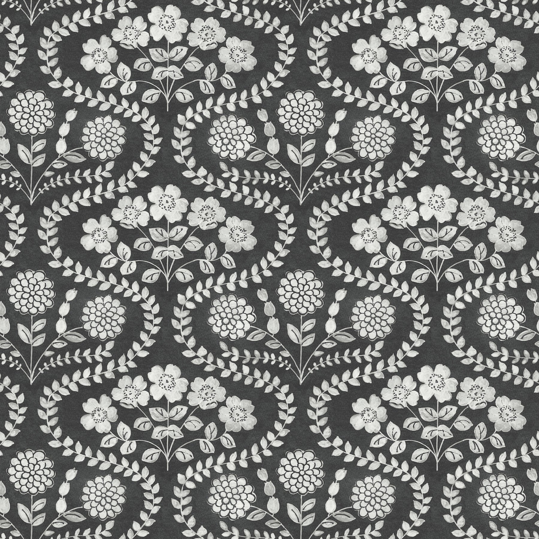 Possessing the charming elements of a cottage garden or a handmade vintage quilt, with sinuous vines like curving paths and bouquets like scented summer fans, this sweet pattern is Folksy Floral Wallpaper.