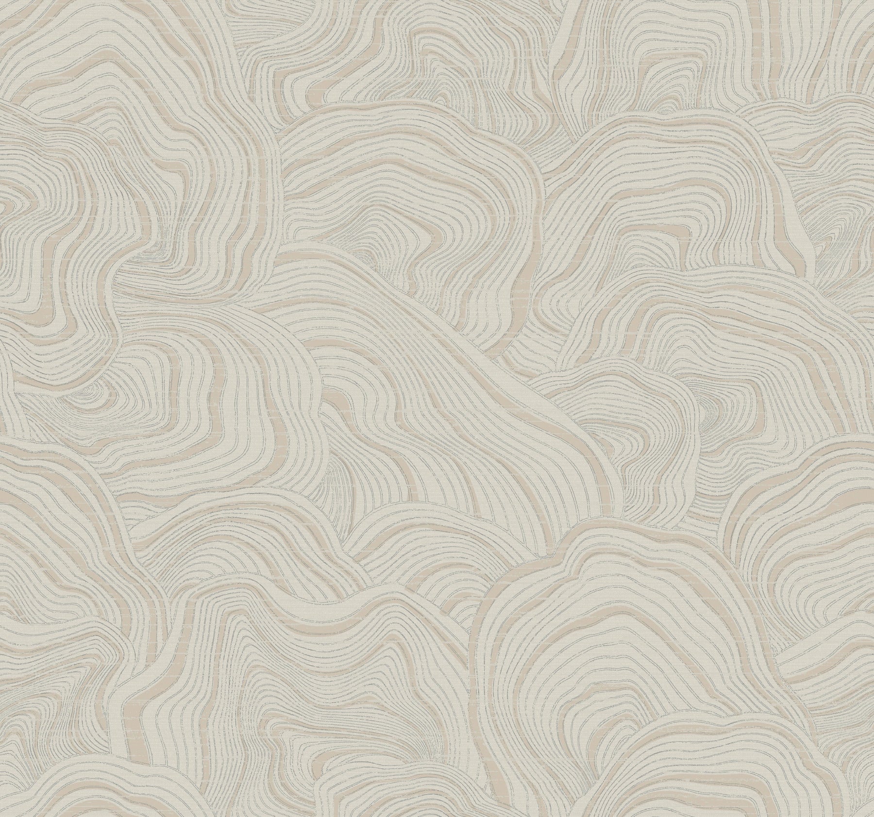 Geodes' stratified layers are tipped with metallic to create a field of mushrooming shapes that reflect light with warmth and elegance, shown in black onyx with rose gold metallic. This Geodes Wallpaper measures approximately 27 inches wide by 27 feet long, measuring approximately 60.8 square feet per roll. The distinction of timeless style.