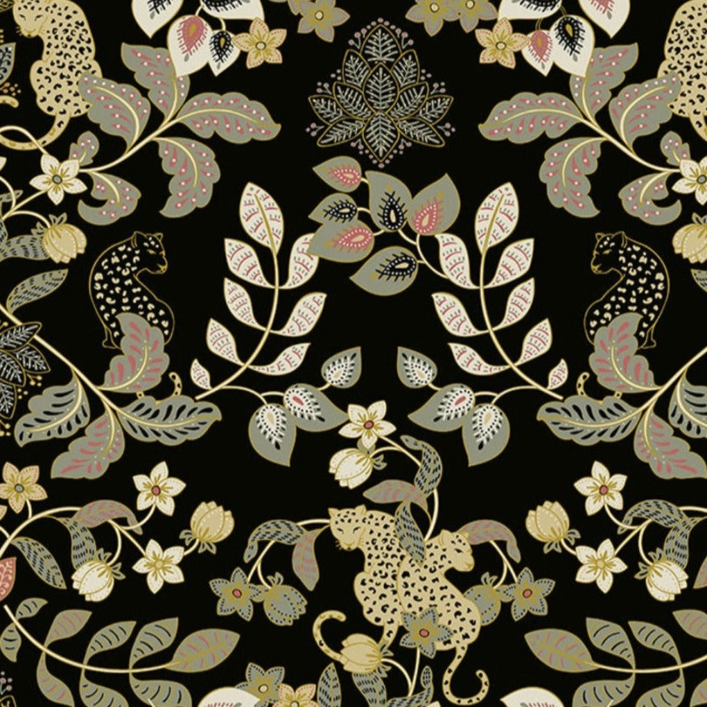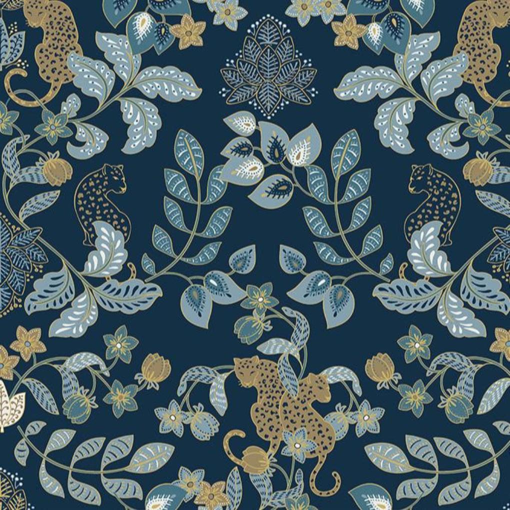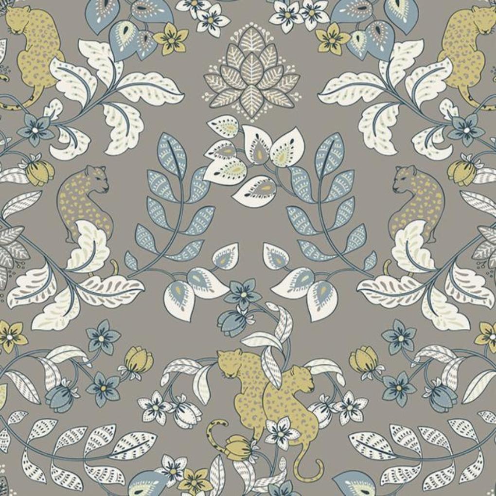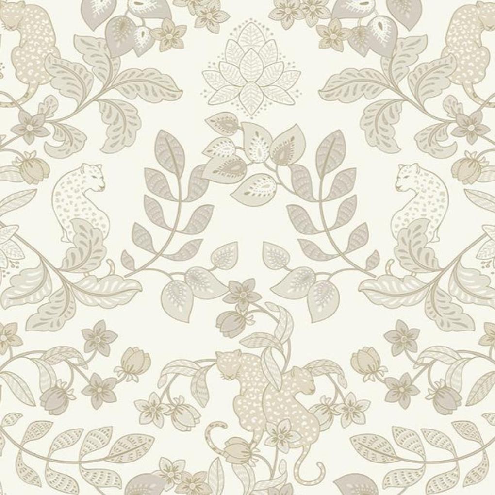 Getty Jungle from the Scott Brothers Collection. Enliven your interiors with a rich dose of bohemian glamour. This modern wallpaper features lounging leopards framed by lush floral vines.