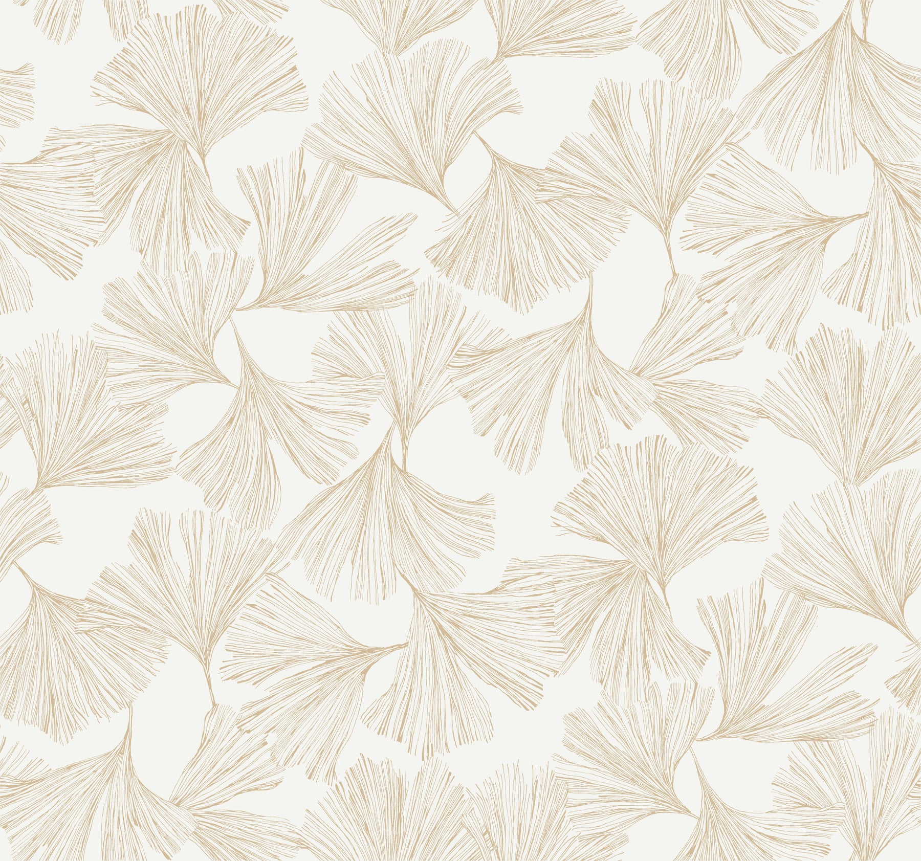 The veined leaves of pattern Ginkgo Toss create a soft, botanical cascade in metallic and matte color. This Gingko Toss Wallpaper measures approximately 27 inches wide by 27 feet long, covering About 60.8 square feet per roll. Durable and easy to remove from primed walls, this friendly to hang unpasted nonwoven wallpaper is created with a special blend of synthetic fibers, making it both easy to hang and tear resistant.