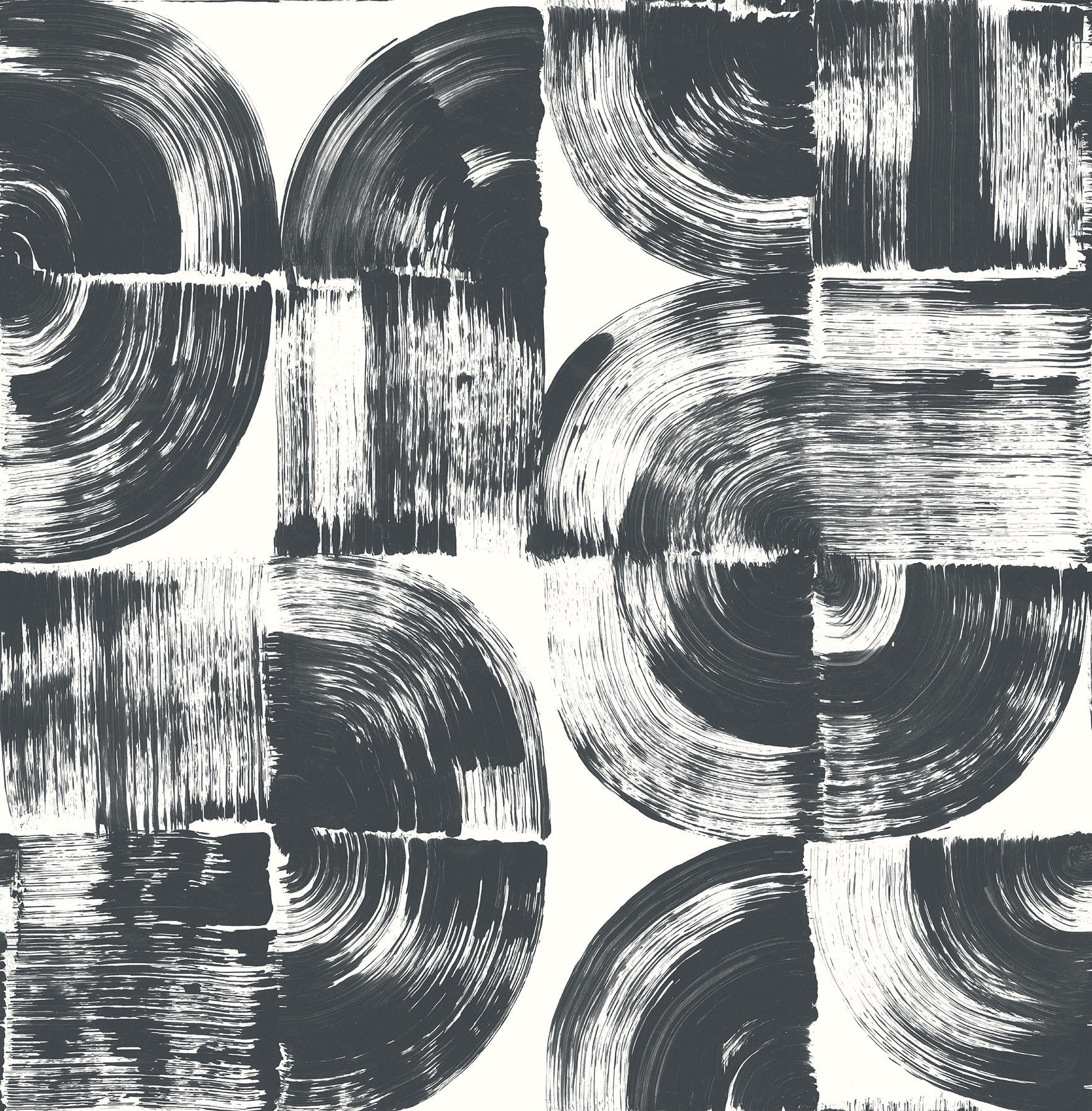 Enjoy a touch of modern drama with this black and white abstract design. The circular and square geometrics seem to have been painted with a wide brush loaded with paint. Giulietta is an unpasted, non woven wallpaper.