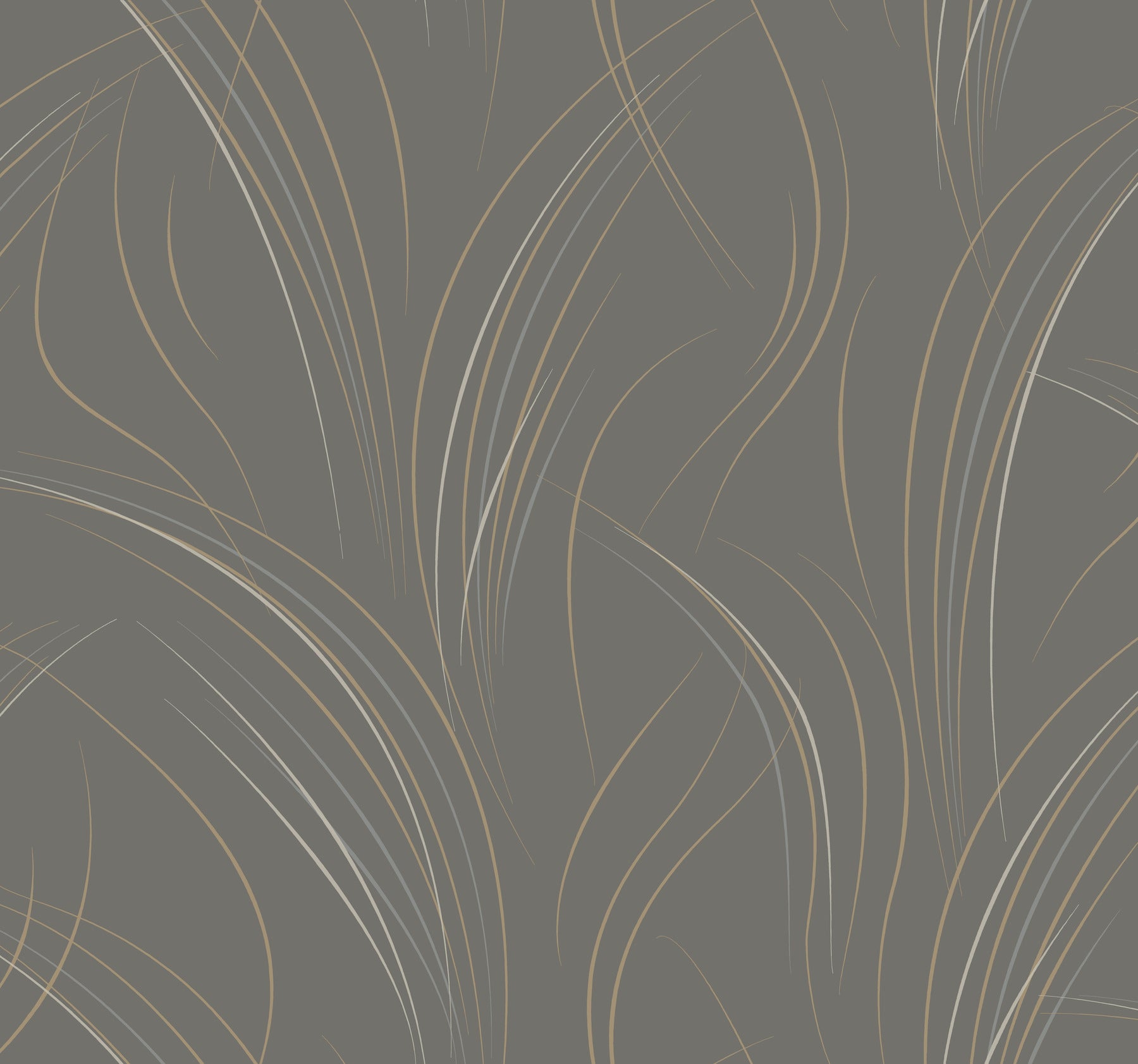 The elegant golden brown, pale yellow, and white metallic lines of swaying grasses give the pattern Graceful Wisp a fresh, modern appeal made bold with a black backdrop. This Graceful Wisp Wallpaper measures approximately 27 inches wide by 27 feet long, measuring approximately 60.8 square feet per roll. Organic simplicity and lustrous adornment for the modern home.