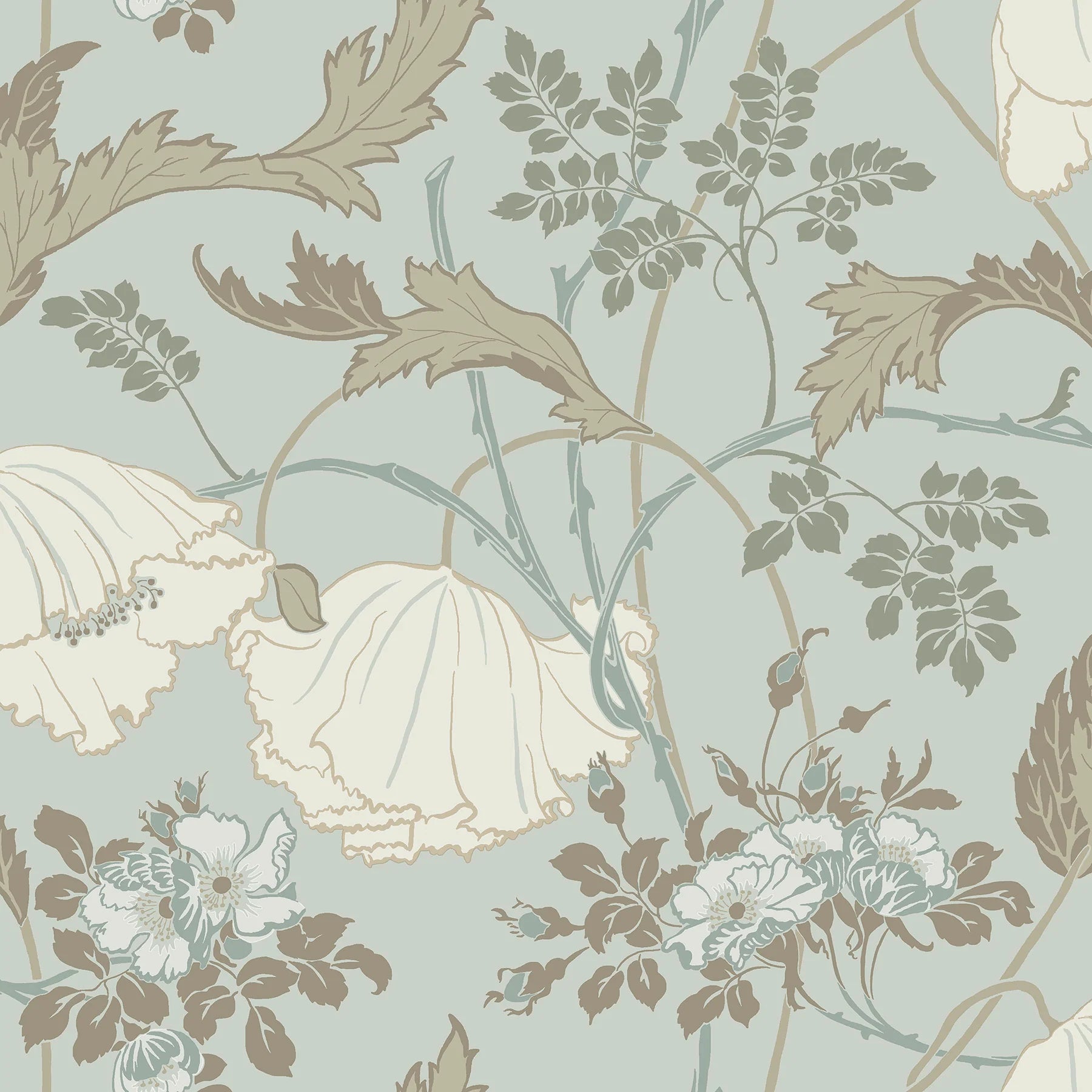 Classic floral motifs gently intertwine with a delicate array of leafy vines. A palette of moss, evergreen, brown, cream, and light blue brings cool sophistication to the design. This Gwendolyn Wallpaper measures approximately 20.5 inches wide by 33 feet long, measuring approximately 56.4 square feet per roll. This collection of timeless wallcoverings is layered with warmth and charm, and effortlessly blends nostalgic patterns with modern designs.†This assortment has a little bit of everythingósimple stripes, subtle plaids, vintage motifs, and bold florals.