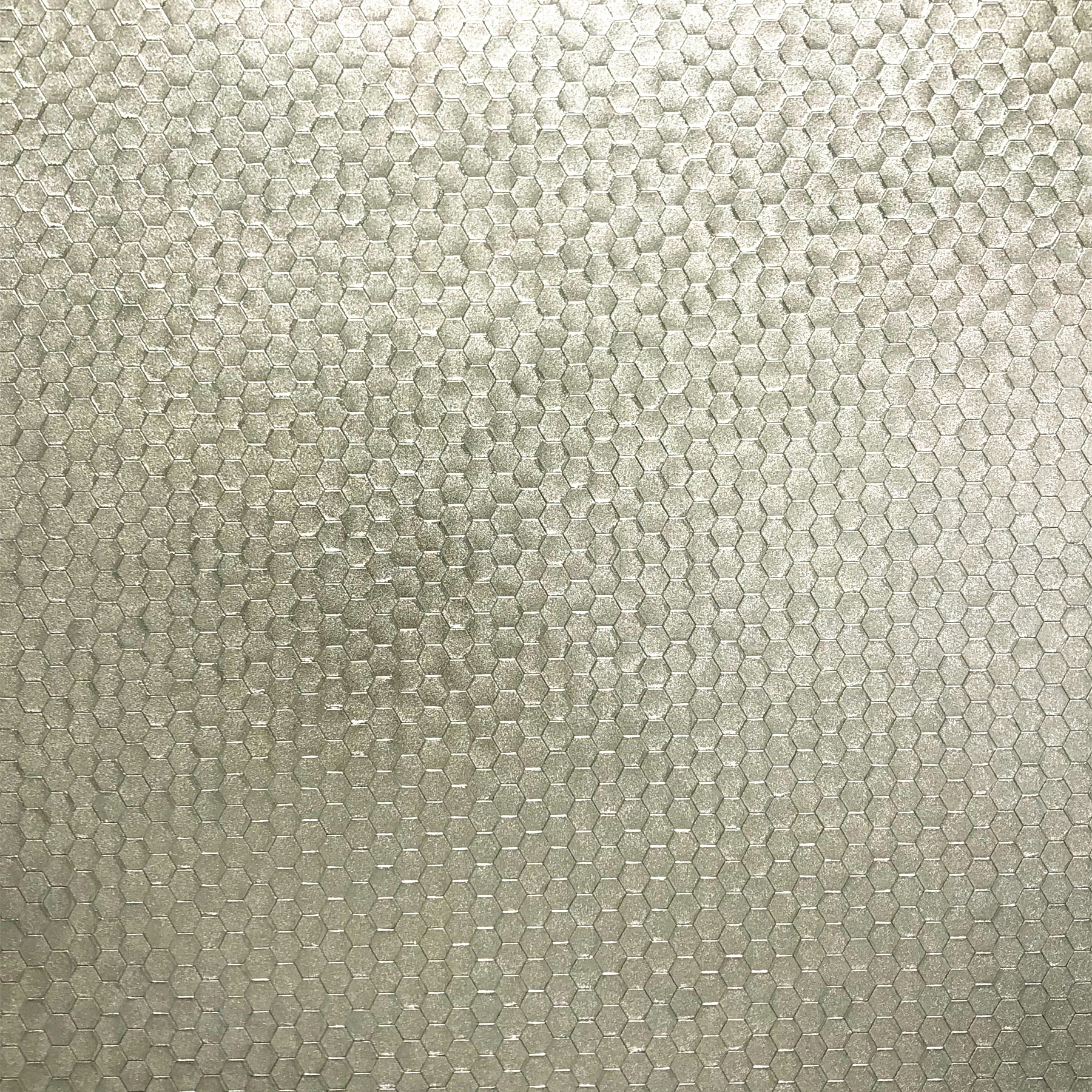 Adorn your walls with this striking geometric design. Its platinum hue and honeycomb pattern will give walls an industrial chic look. Carbon Honeycomb Geometric is an unpasted, solid sheet vinyl wallpaper.