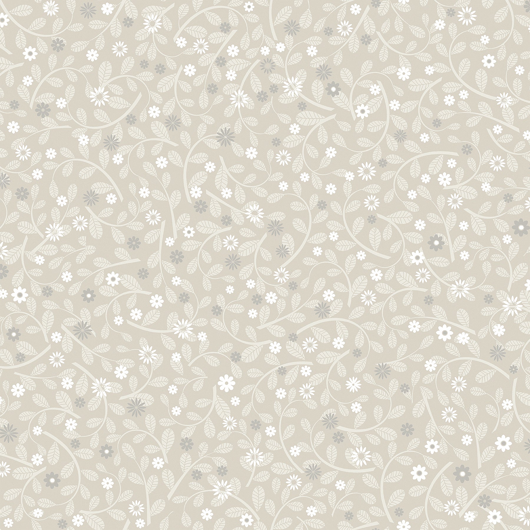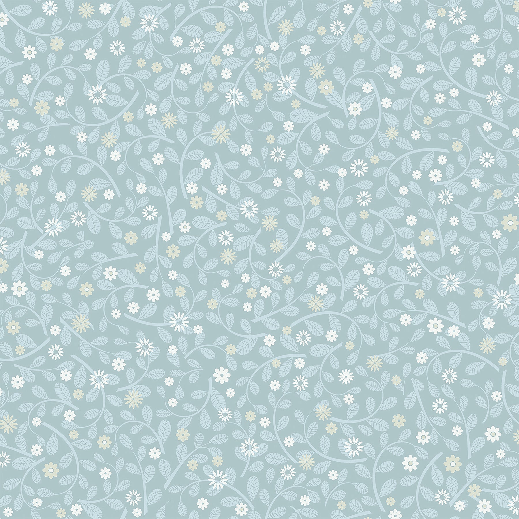 Add instant charm to your walls with this dainty floral wallpaper. Short cream-colored vines are dotted with diminutive blue and white daisies, all softly offset by a light grey backdrop. Hummelvik is an unpasted, non woven wallpaper.