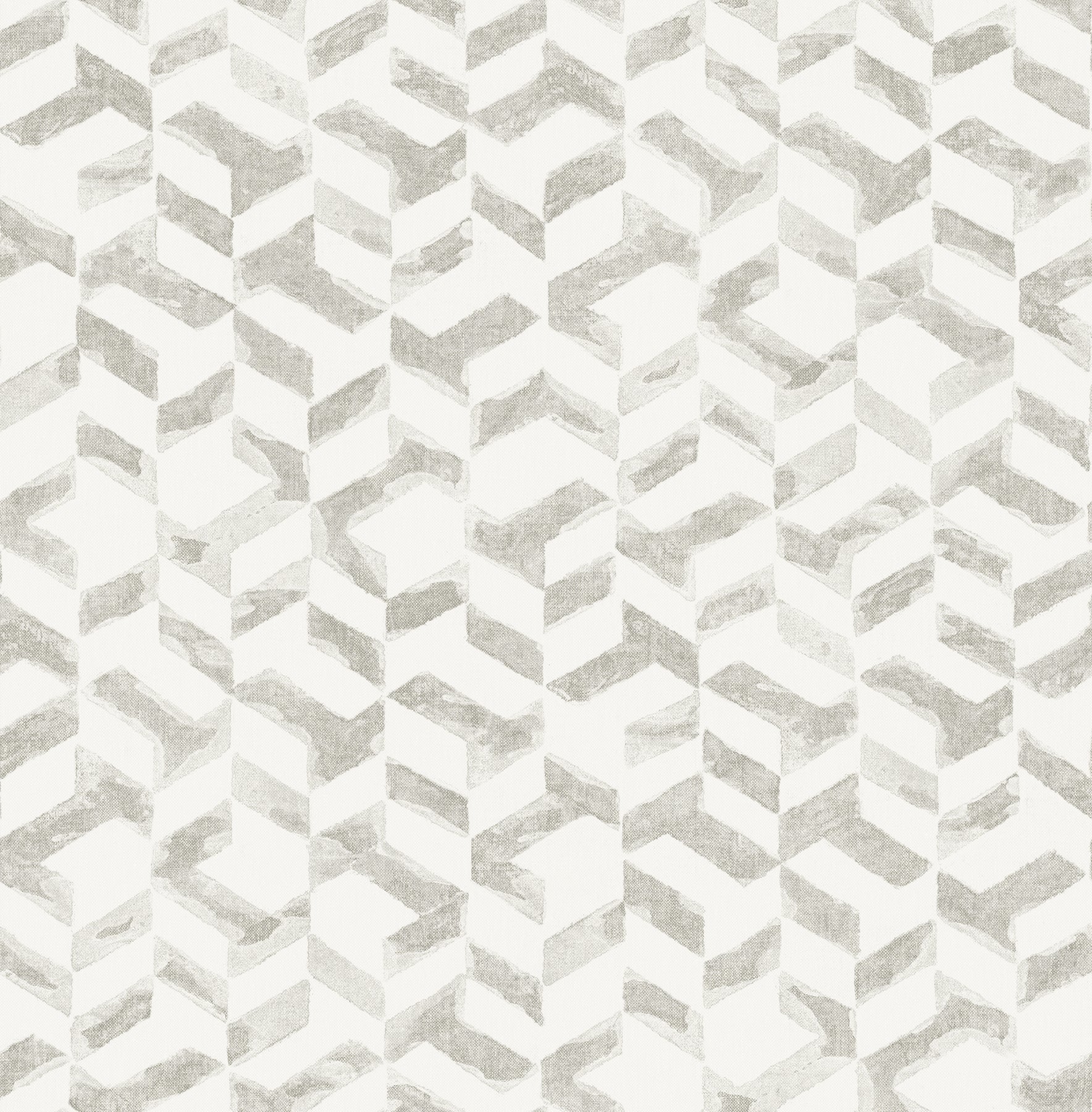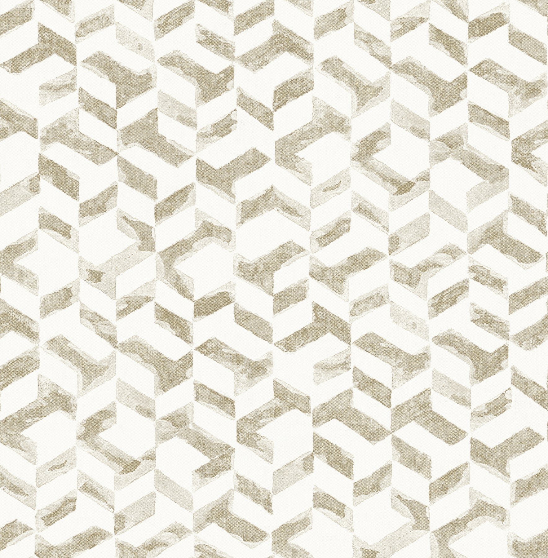 A champagne geometric print shimmers across an off-white background in this faux linen design. Distressed accents and metallic highlights create a dimensional effect. Instep is an unpasted, non woven wallpaper.