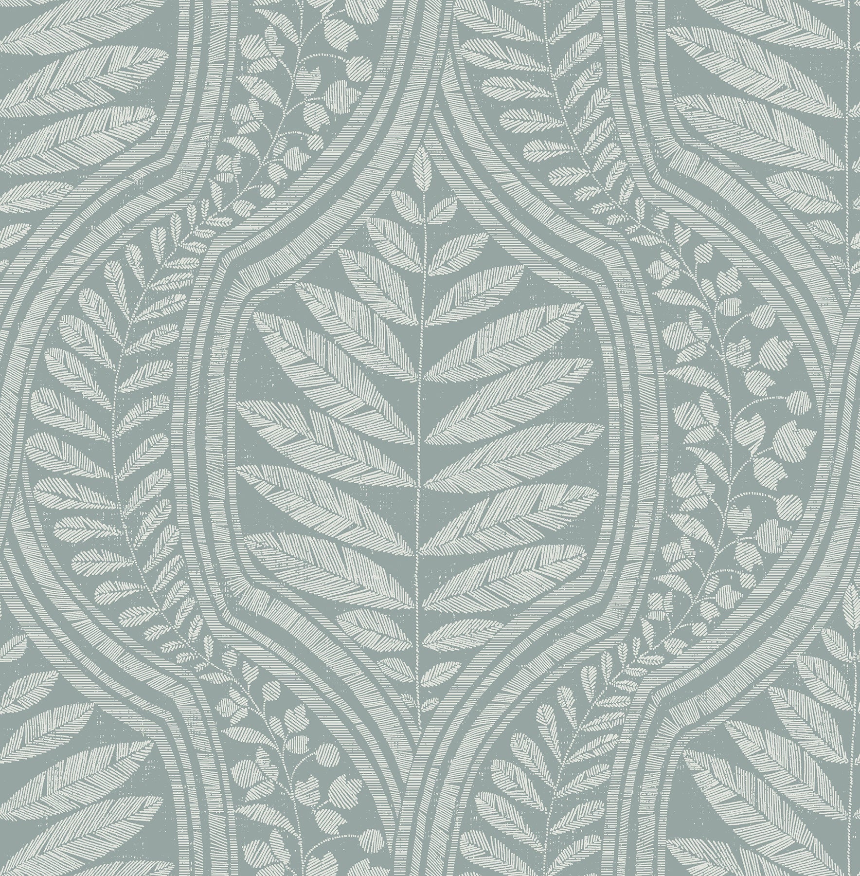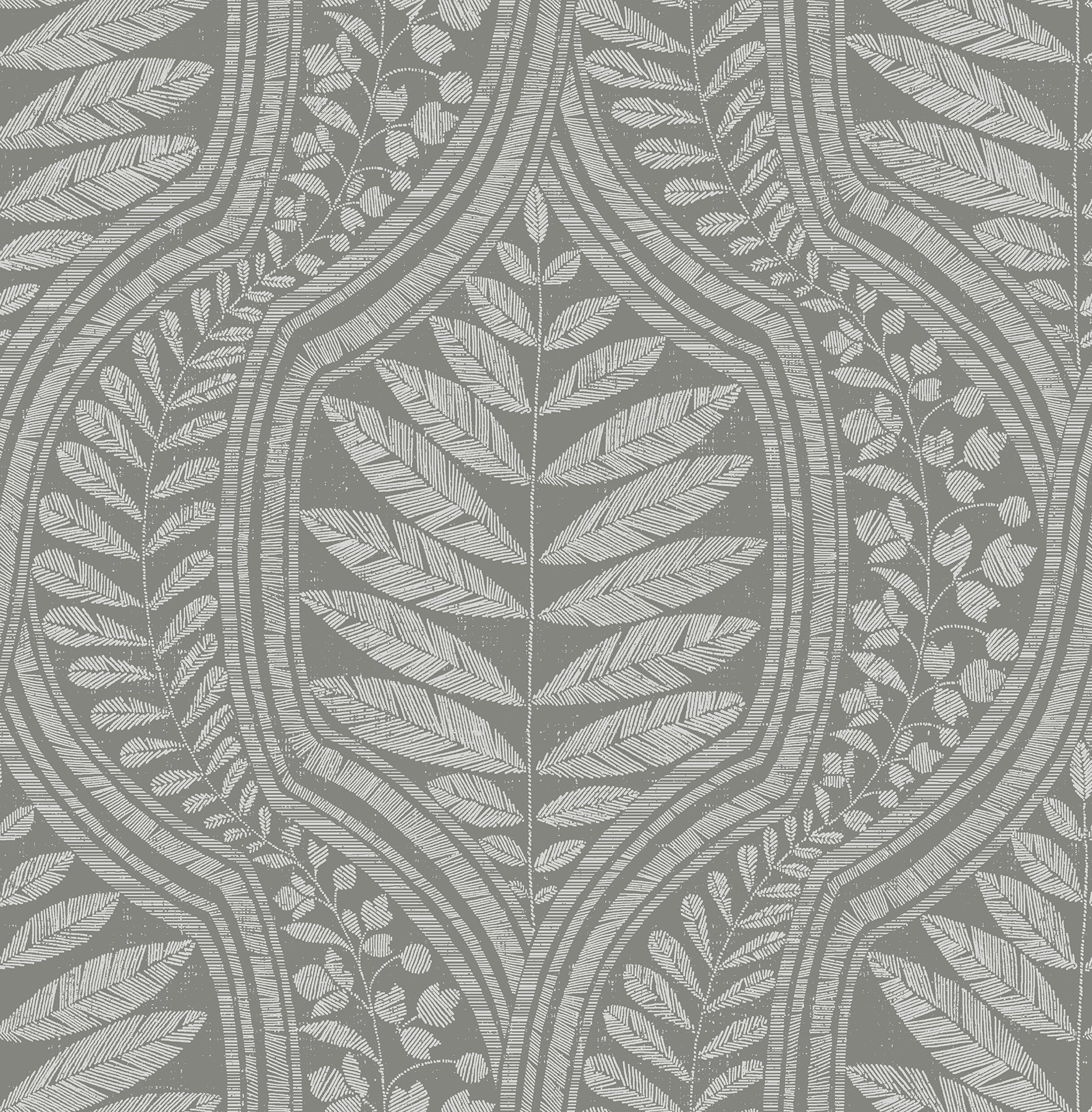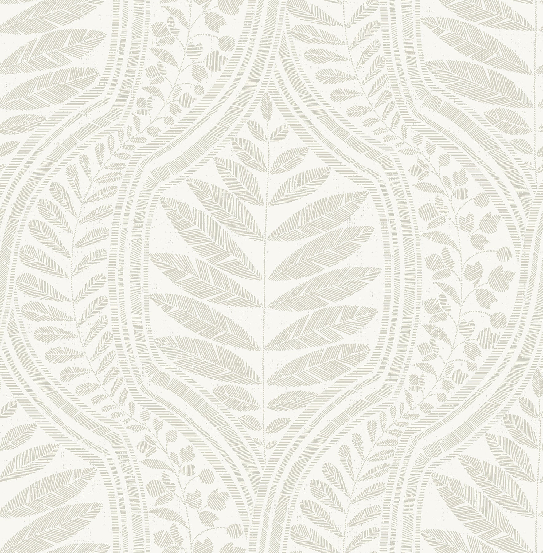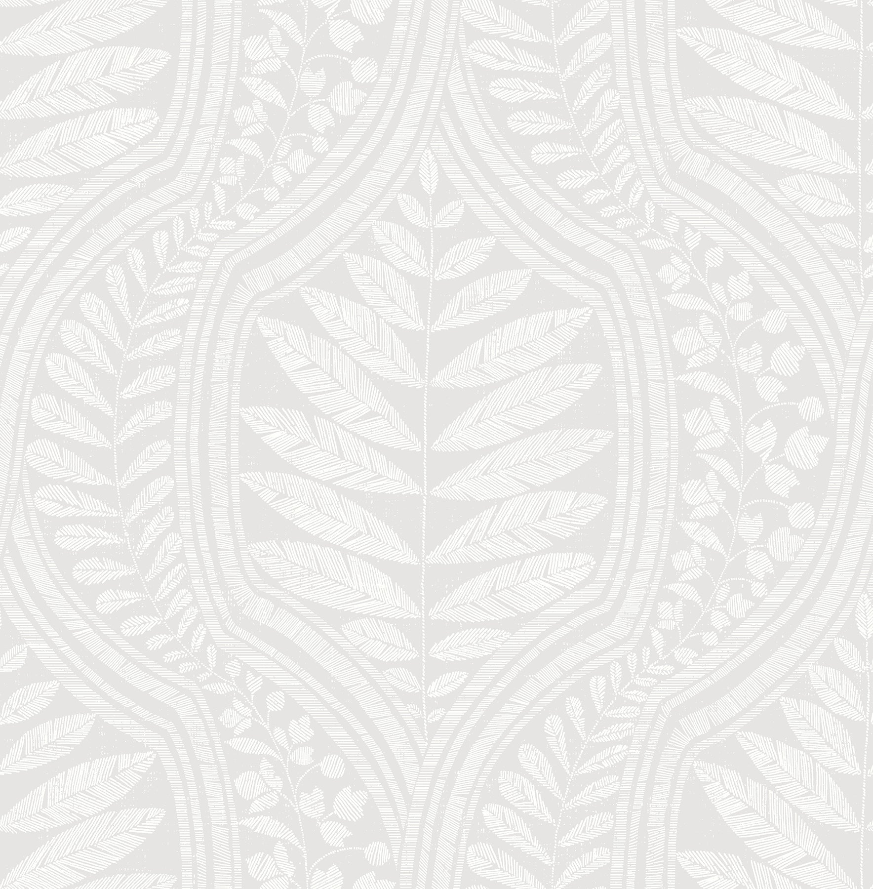 Contemporary with a hint of enchantment, this light grey wallpaper features a gorgeous ogee design of leaves. Complete with a Scandinavian flair, this design adds a soothing ambiance to any home. Juno is an unpasted, non-woven wallpaper.