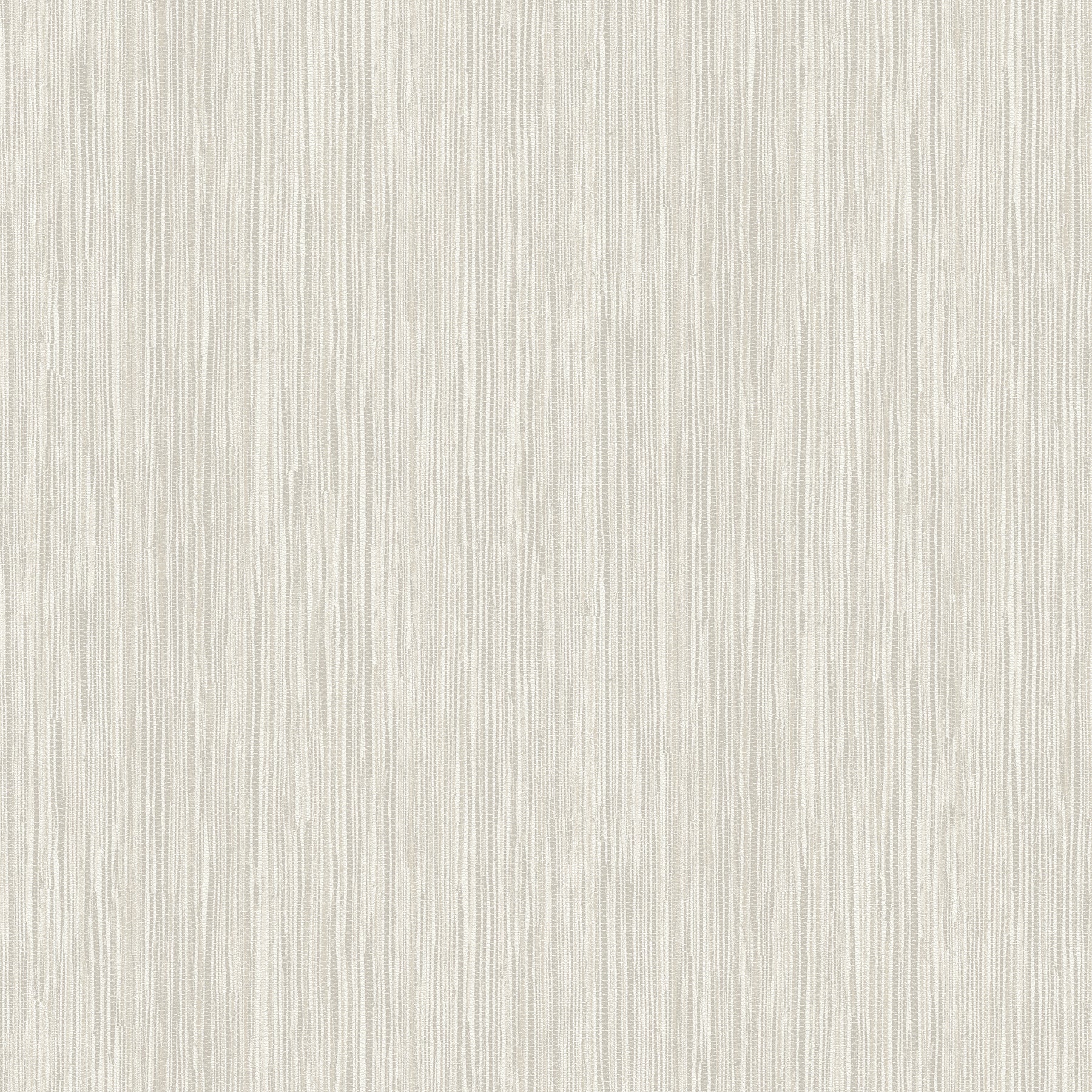 Add subtle depth to white walls with this creamy faux grasscloth wallpaper. The vertical strips are a gentle blend of white, silver, grey and golden beige accented by raised ink stitching. Justina is an unpasted, non woven fabric backed vinyl wallpaper.