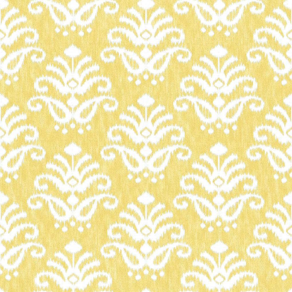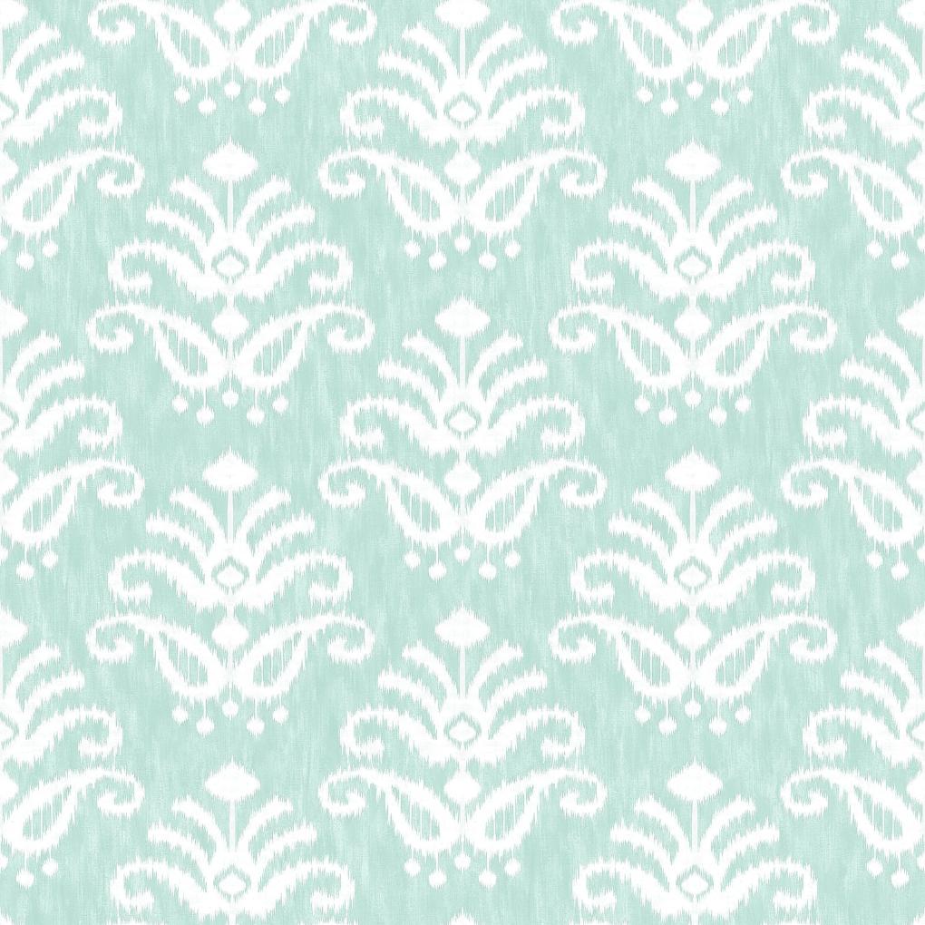 This medallion wallpaper is the perfect blend of tranquil and uplifting. Bright hues with a white ikat medallion form a chic, abstracted botanical pattern. Keaton is an unpasted, non woven wallpaper.