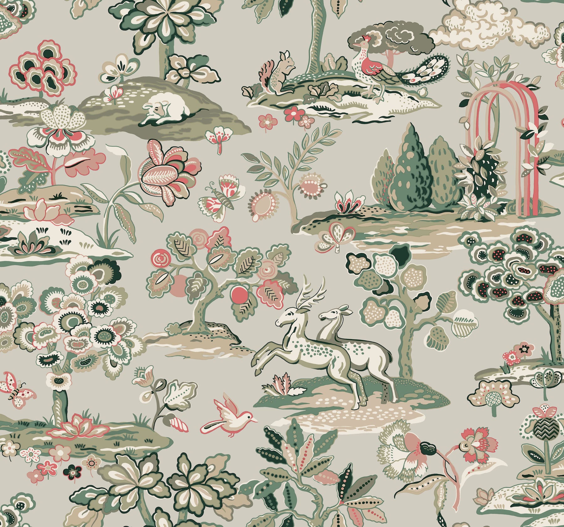 Captivating animals and fantastic botanicals are depicted in marvelous colorways. Novel with a vintage feel, this is Kingswood Wallpaper. This Kingswood Wallpaper measures approximately 27 inches wide by 27 feet long, covering About 60.8 square feet per roll. Manufactured on Sure Stripô, a unique high performance substrate, this ultra-easy removable wallpaper is guaranteed easy to install and easy to remove; simply use water to activate.