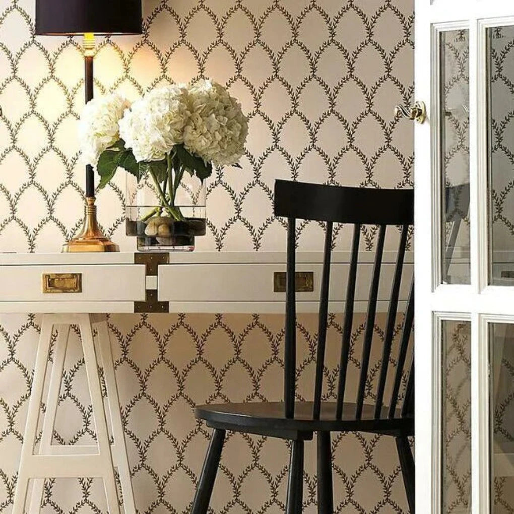 Laurel from Rifle Paper Co. features arbors of delicate leaves arc across a solid background, creating a pattern with a timeless feel. This Laurel Wallpaper measures approximately 27 inches wide by 27 feet long, covering About 60.8 square feet per roll. Durable and easy to remove from primed walls, this friendly to hang unpasted nonwoven wallpaper is created with a special blend of synthetic fibers, making it both easy to hang and tear resistant.