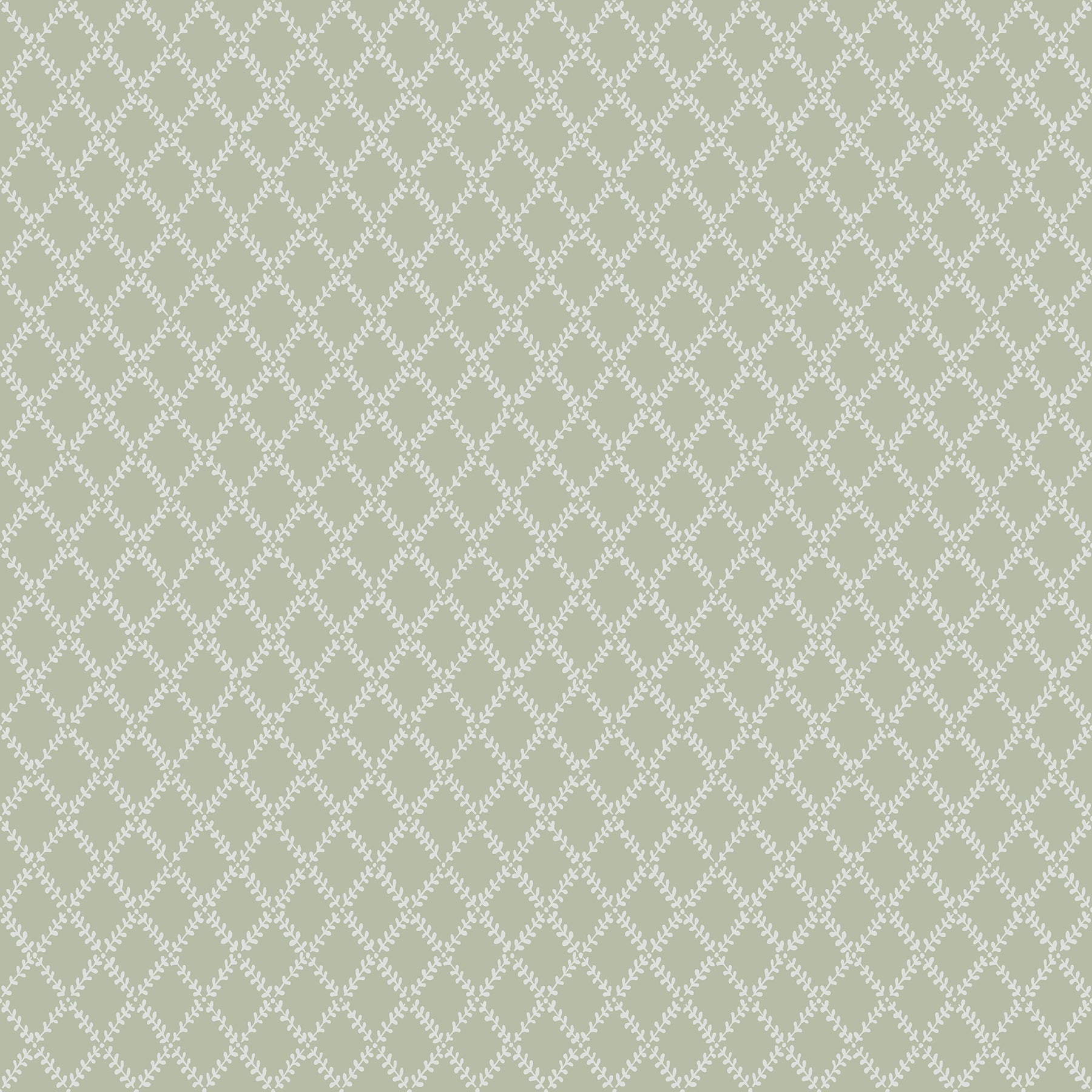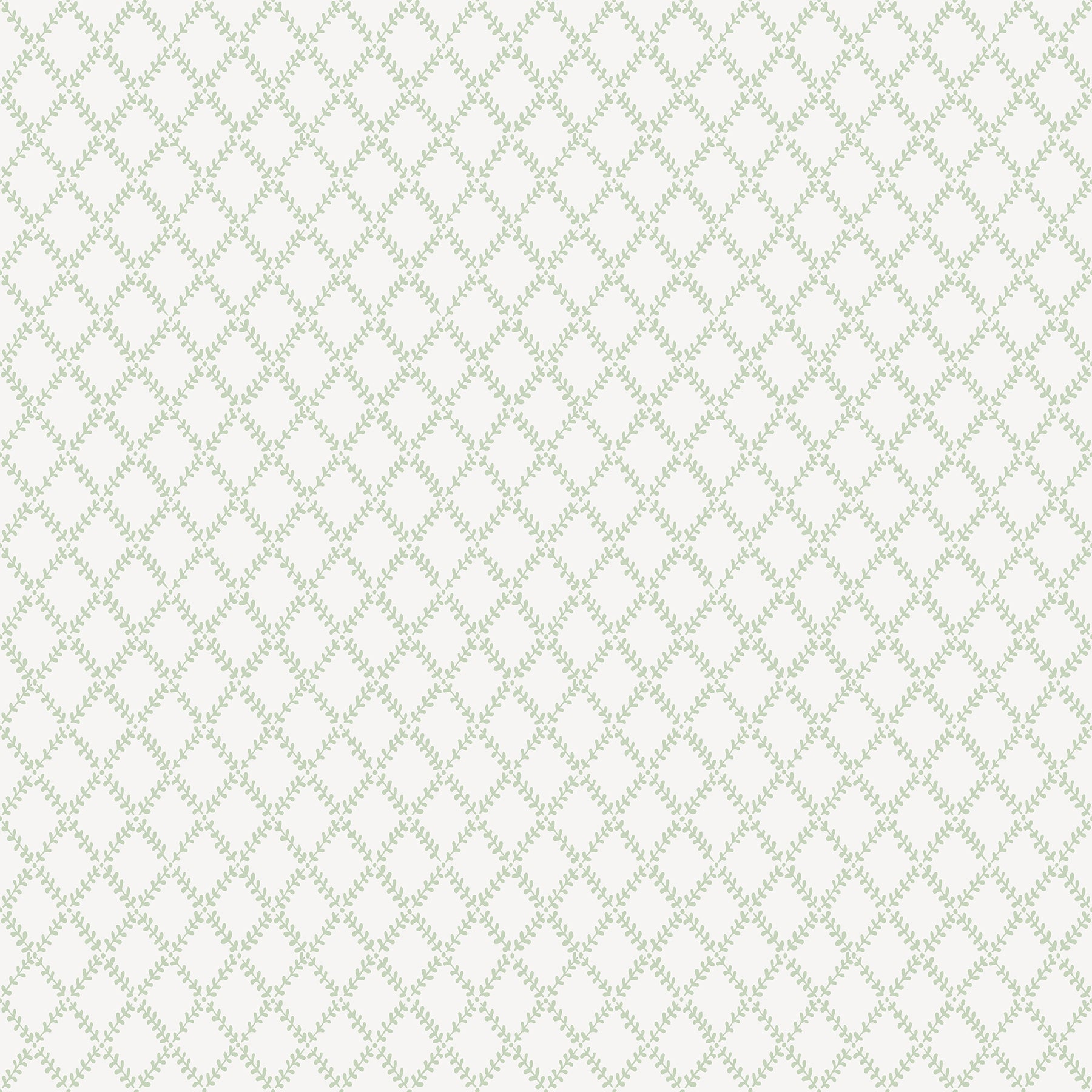 A charming classic is elevated with whimsical, botanical detailing. A diamond trellis is shaped from delicate leafy branches inked in sage against crisp white. Trevor is an unpasted, non woven wallpaper measuring 20.9 inches wide by 33 feet long, covering approximately 57.5 square feet per roll.