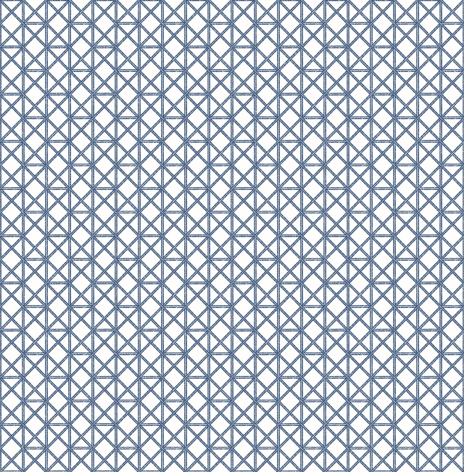 Thin white rods are woven together across a cool blue backdrop, forming an intricate pattern of squares and triangles. This wallpaper is a perfect accent for coastal designs. Lisbeth is an unpasted, non woven wallpaper.