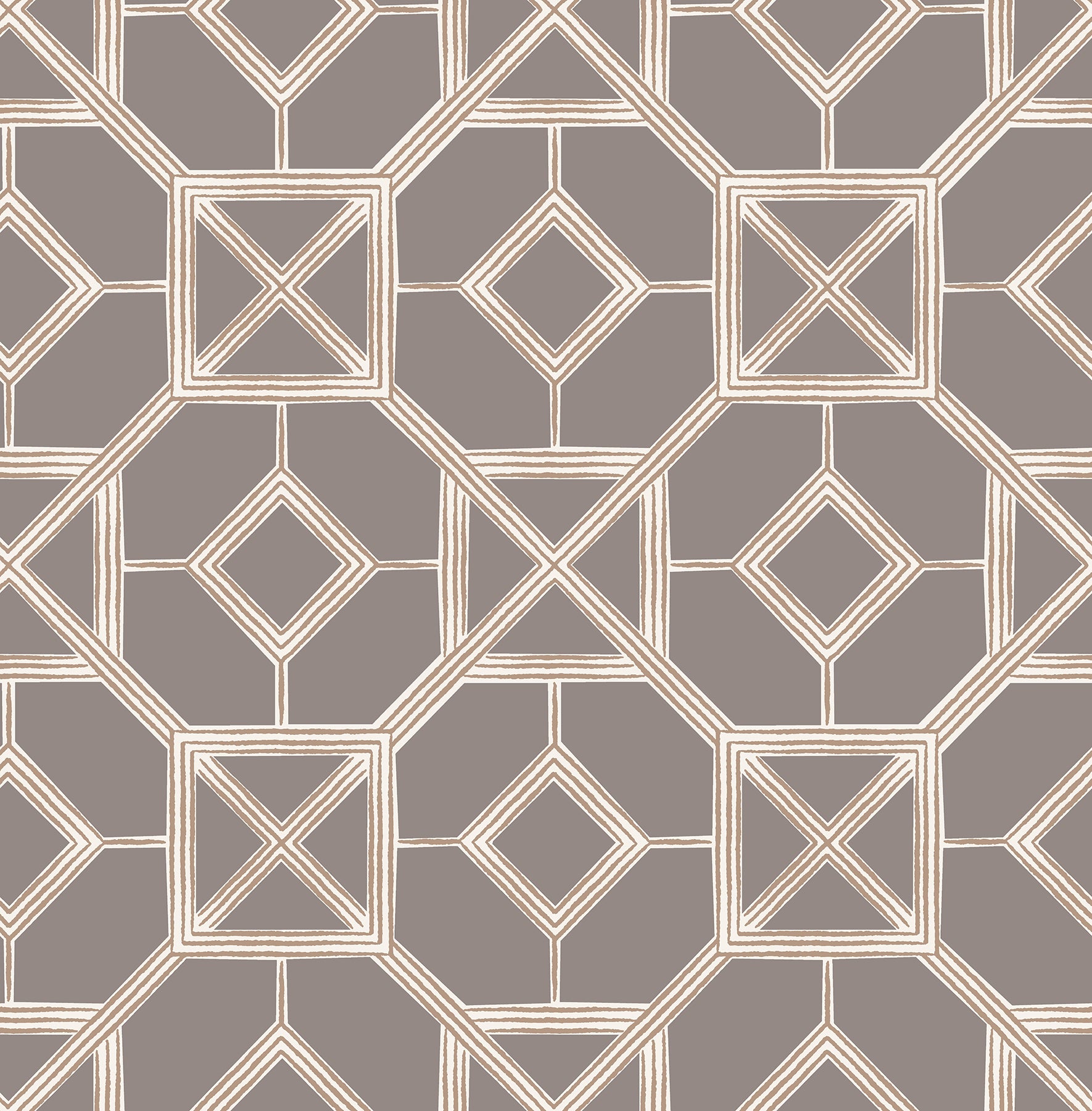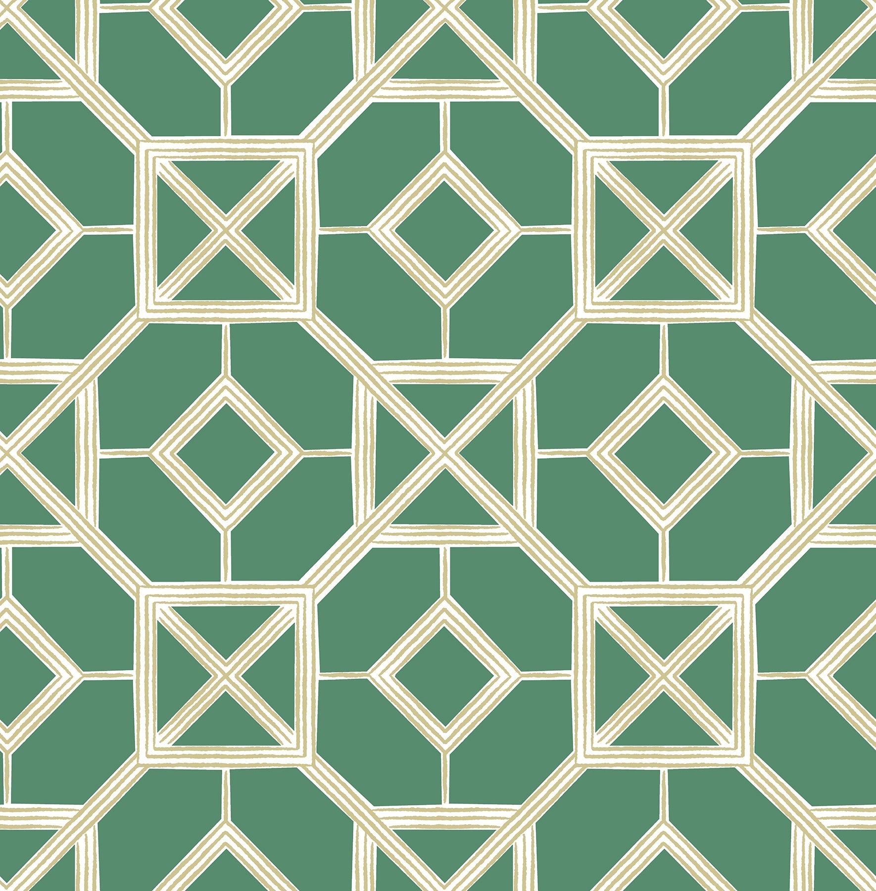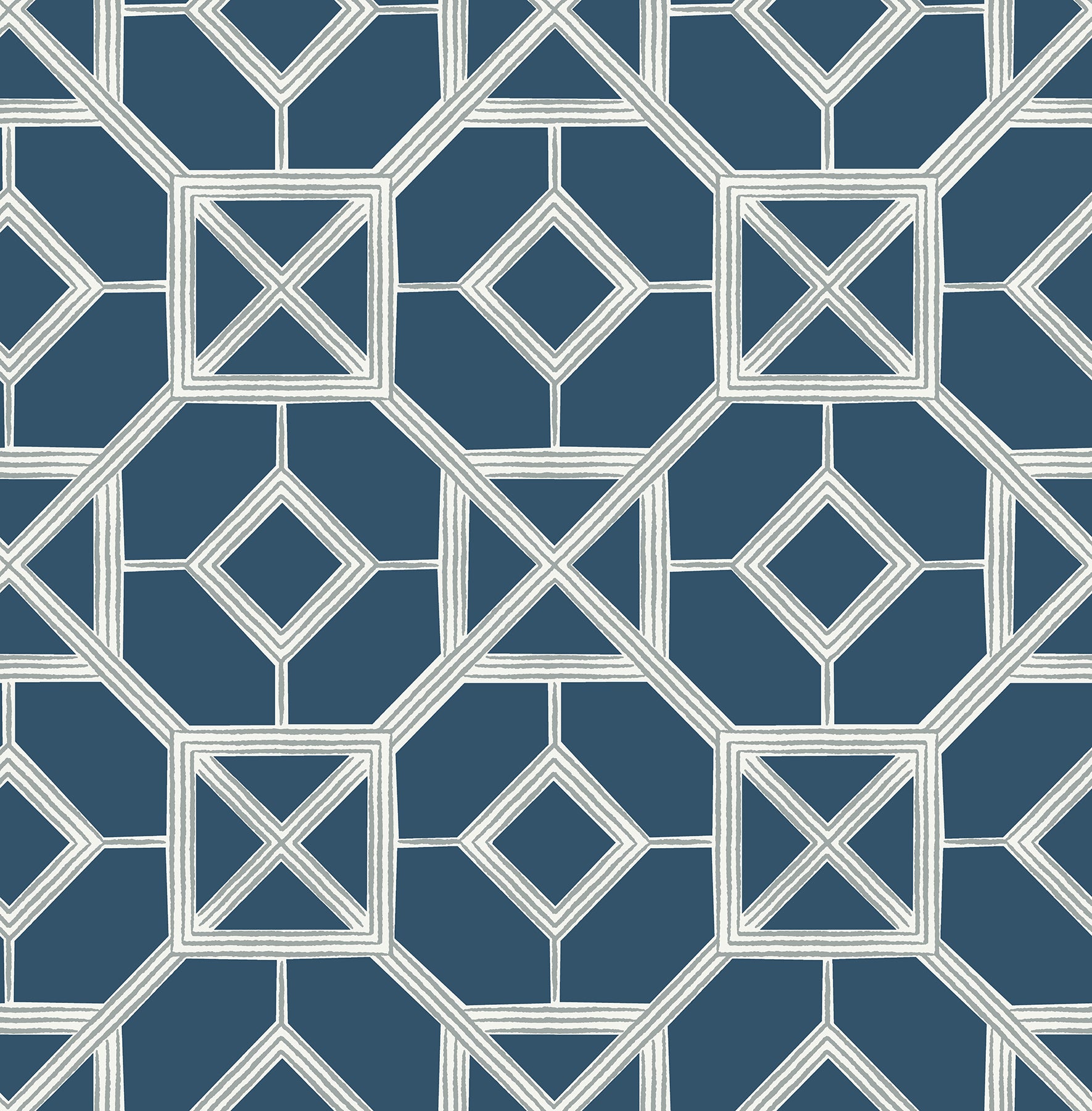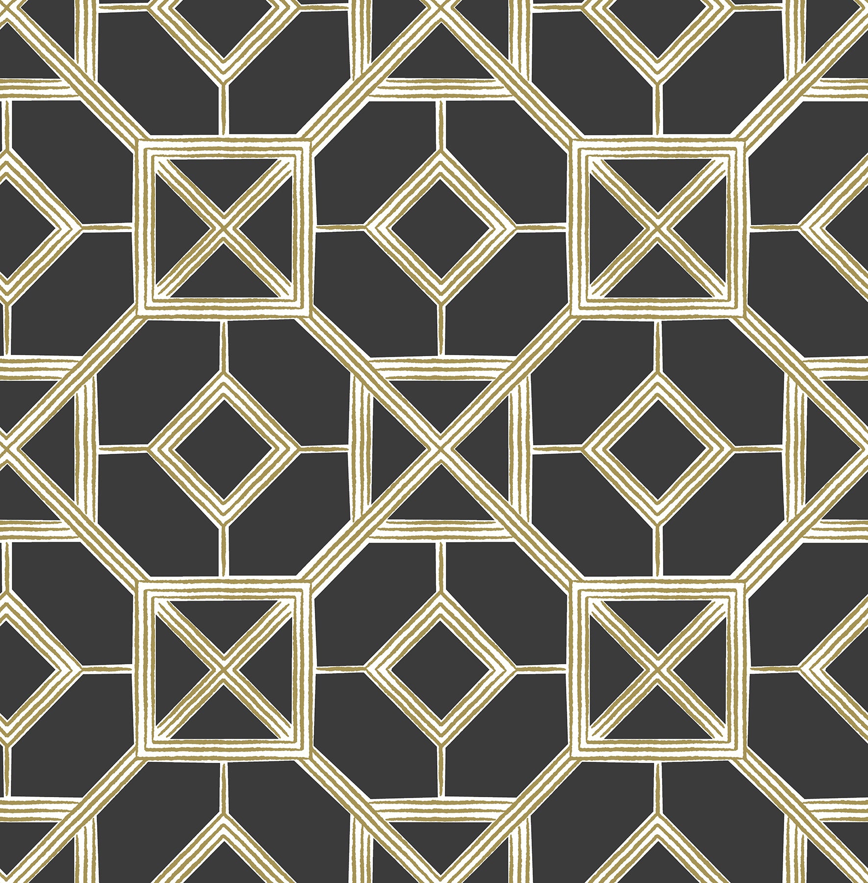 This trellis wallpaper perfectly blends classic design with modern appeal. The intricate white geometric detailing is embellished with lines of metallic gold, which is strikingly contrasted by the background. Livia is an unpasted, non woven wallpaper.