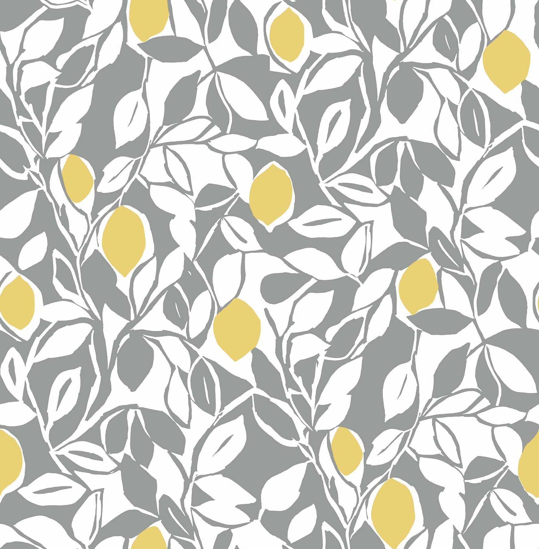 A twist of a classic theme, this eclectic fruit wallpaper will add a bright splash of character to your space. Citrus hangs from branches shaped by the interplay of bright blue color blocking and white negative space. Loretto is an unpasted, non woven wallpaper.