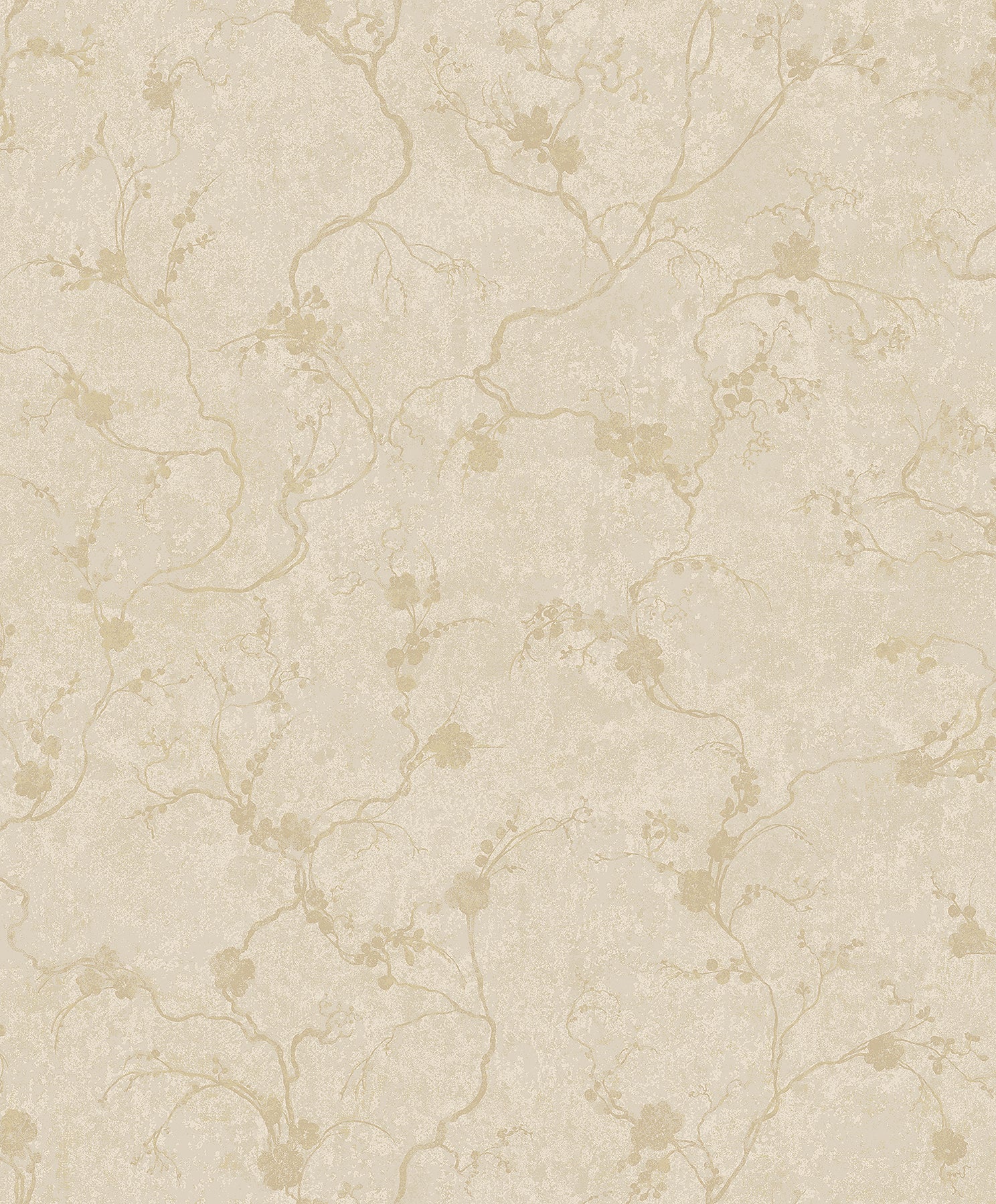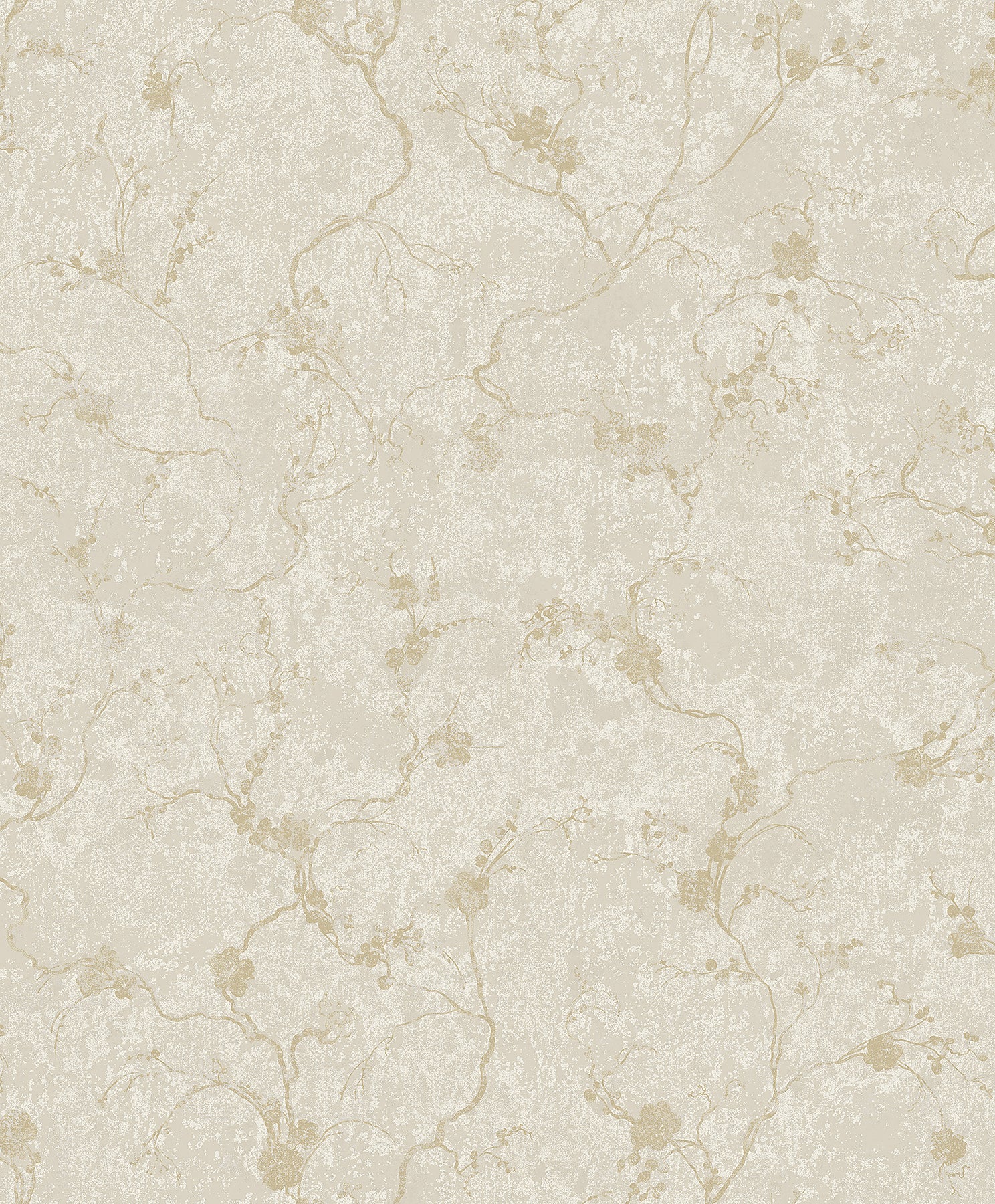 This timeless floral vine wallpaper offers a refined, feminine finish for your walls. The delicate, climbing tendrils are silhouetted in metallic gold along a cream backdrop with plaster-like detailing. Mahina is an unpasted, non woven wallpaper.