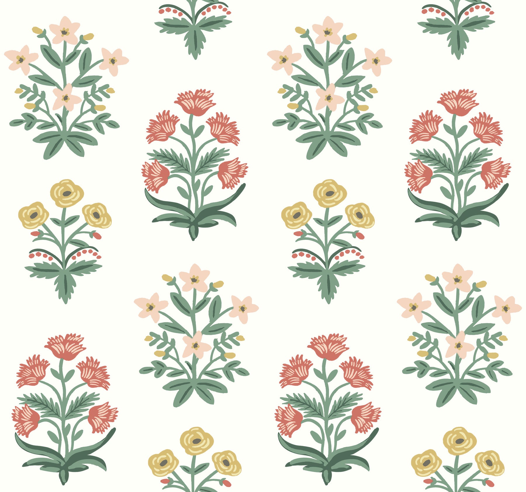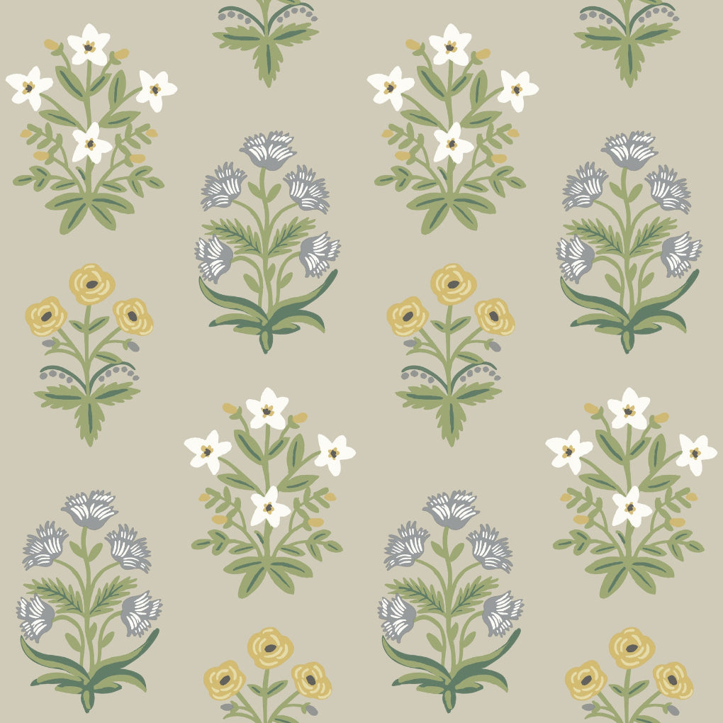 This Mughal Rose Wallpaper measures approximately 27 inches wide by 27 feet long, covering About 60.8 square feet per roll.