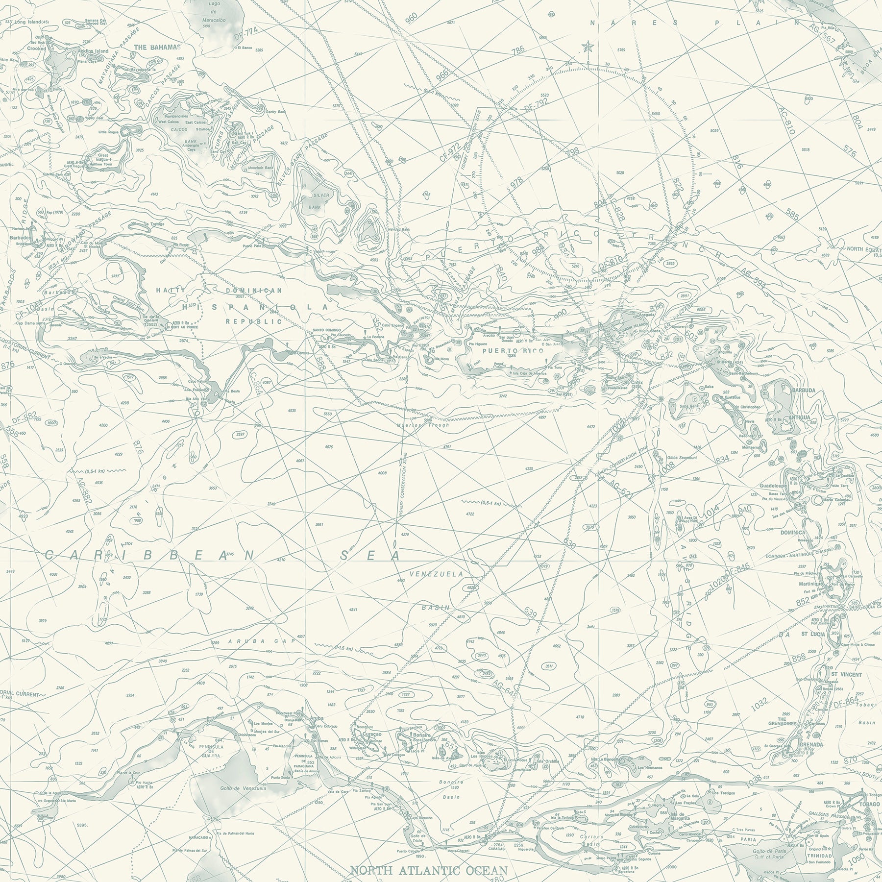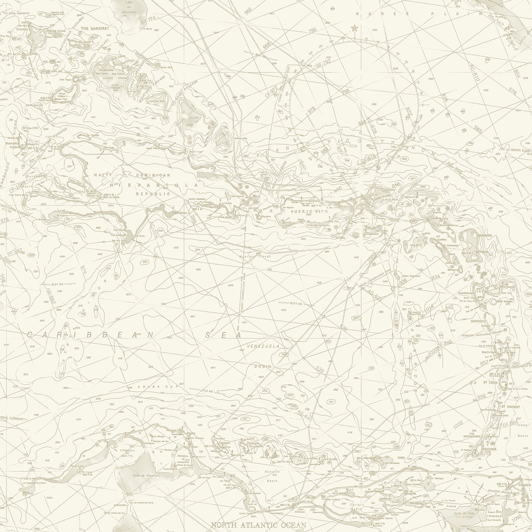 Embark on an epic sea-faring adventure with this navigational chart design! The intricately-detailed nautical chart depicts both land and sea in black inks against crisp white. Charts is a pre-pasted, sure strip wallpaper.
