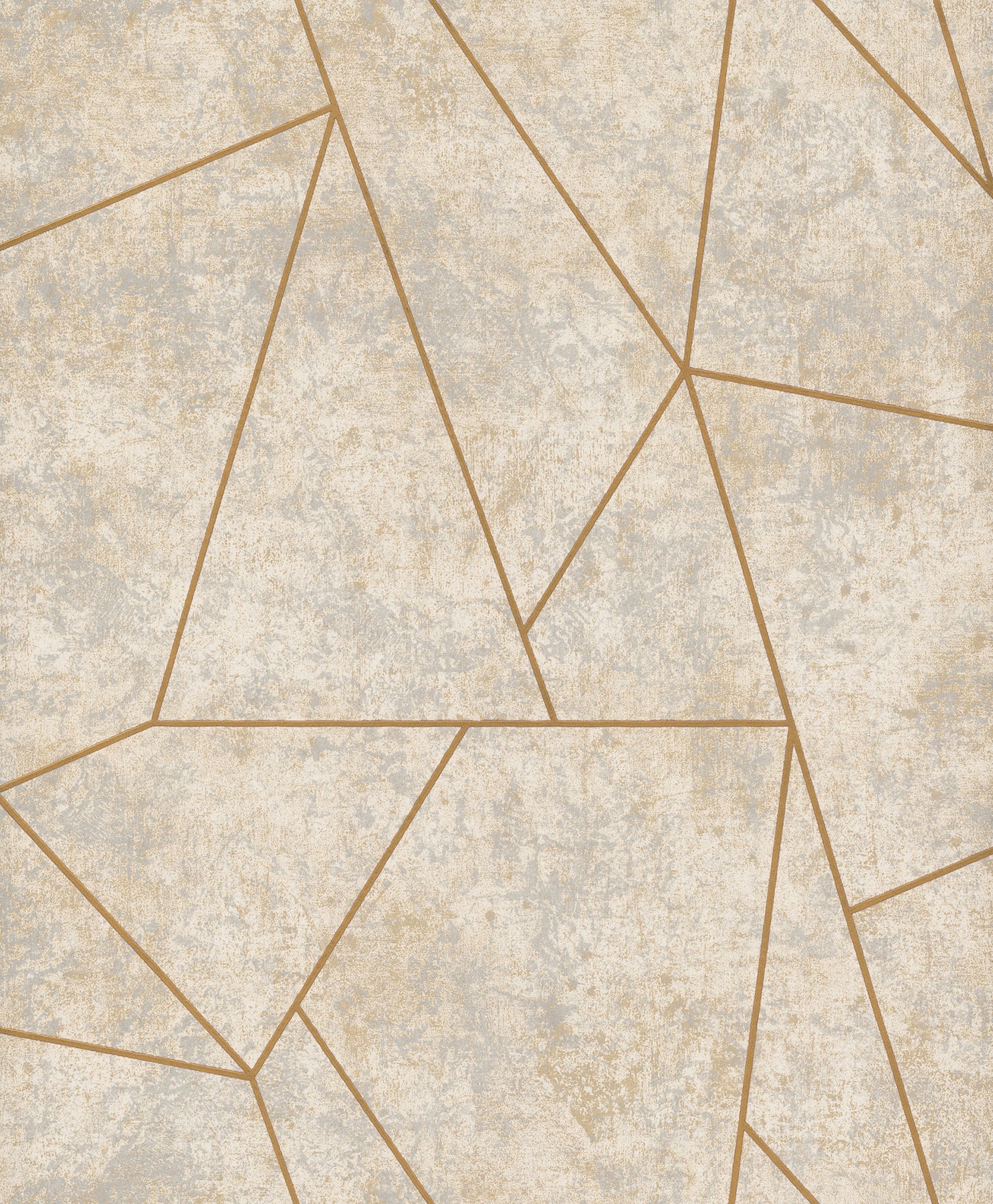 Fractured metallic lines create a contemporary geometric of irregular lines and angles in the Nazca pattern, shown in almond pearlescent with gold metallic. This Nazca Wallpaper measures approximately 20.8 inches wide by 33 feet long, measuring approximately 57.2 square feet per roll. The long awaited follow-up to the popular first release, Modern Metals Second Edition energizes contemporary spaces with charismatic visual artistry defined by the allure of luminous metallic.