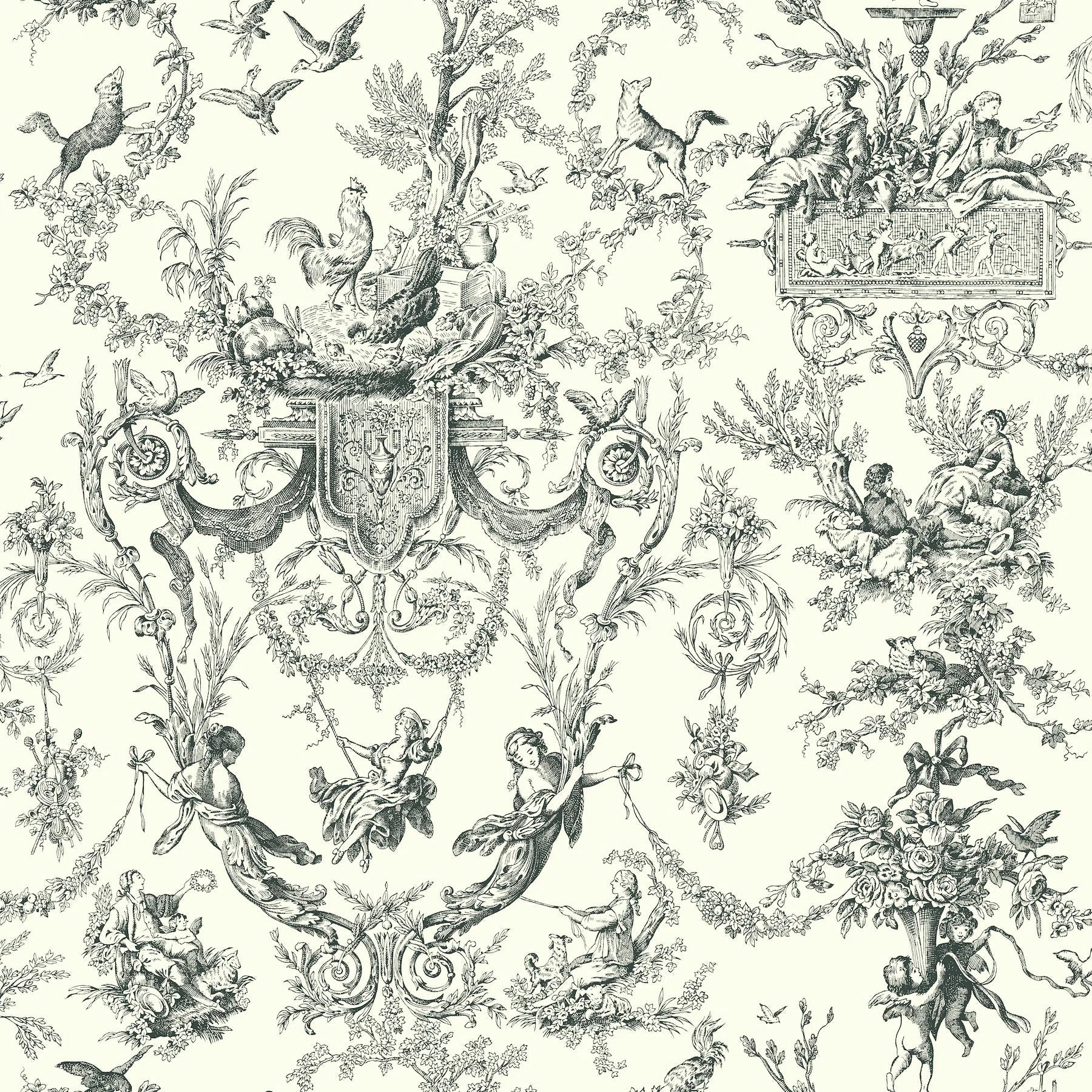 Old World Toile's picture of pastoral bliss features several romantic vignettes intricately illustrated in black against cream. This Old World Toile Wallpaper measures approximately 20.5 inches wide by 33 feet long, measuring approximately 56.4 square feet per roll. The quintessential design for timeless romance, toile (pronounced ëtwallí) traces its origins to 18th century fabrics. This celebrated motif is explored with a range of classical reproductions and modern reimaginings.