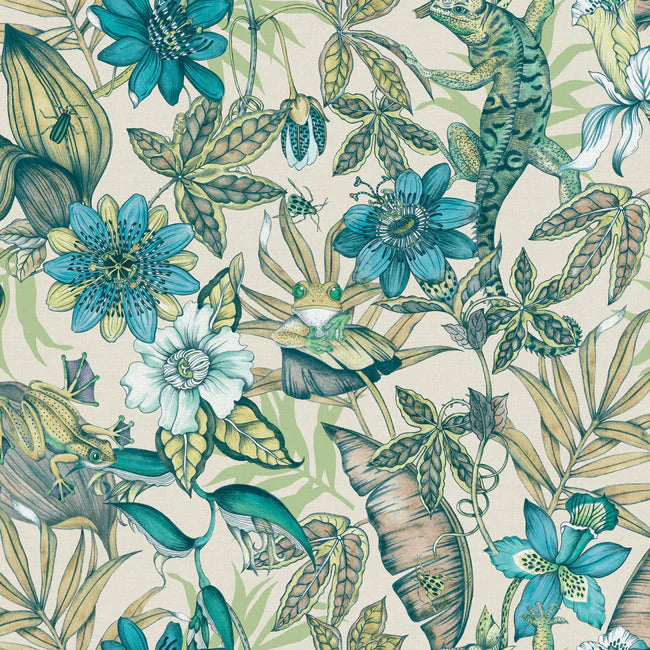 Transform your space into a tropical paradise with this Designer Rainforest Blue/Multi Frogs Lizards Wallpaper. The intricate design features a vibrant rainforest motif with playful frogs and lizards, adding a whimsical touch to any room. The blue and multi-color palette brings a lively and colorful vibe to your walls. With a generous size of 60 square bolts, this wallpaper is perfect for creating a bold statement wall or covering an entire room with a unique and eye-catching pattern. Elevate your decor with this nature-inspired wallpaper that will surely make a statement in your home.