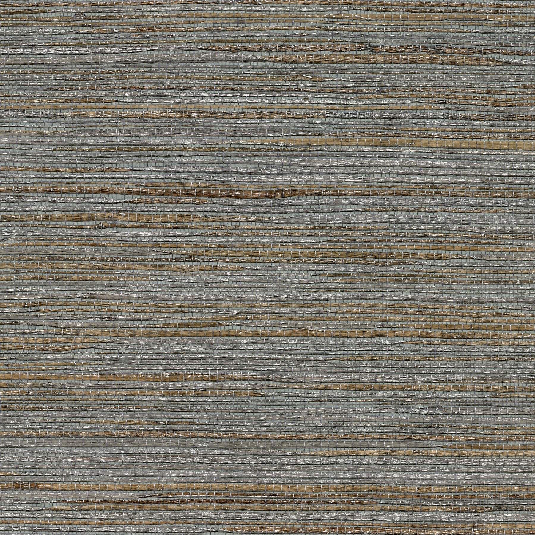 An intricately woven grasscloth wallpaper made of ramie. Dark charcoal and brown fibers create a near black canvas over a graphite background. Shandong is an unpasted, ramie wallpaper.