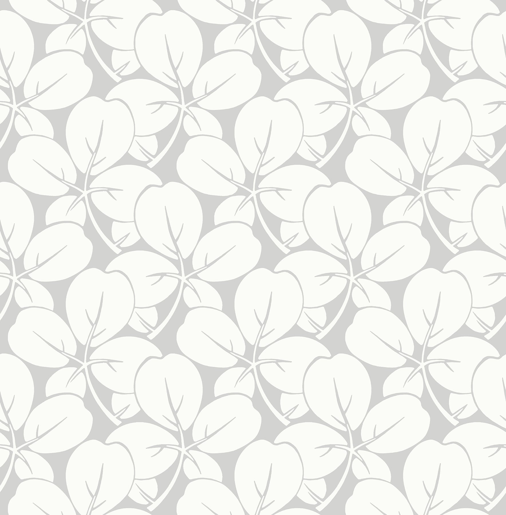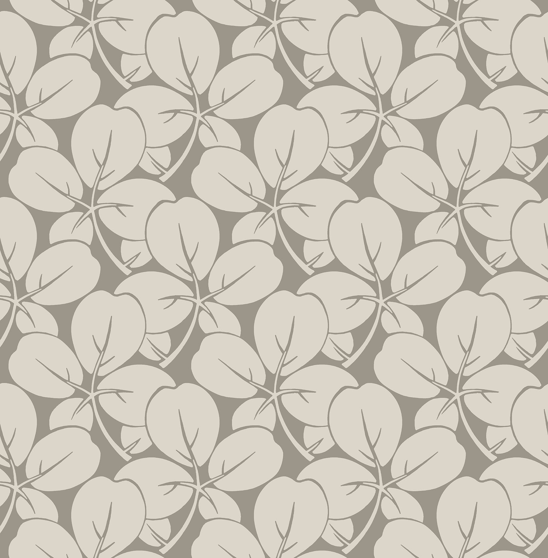 Enjoy a perfect blend of refined elegance and whimsical design with this botanical wallpaper. A taupe backdrop is covered with a field of large, silver four-leaf clovers that are barely visible until they catch the light. Robert is an unpasted, non woven wallpaper.
