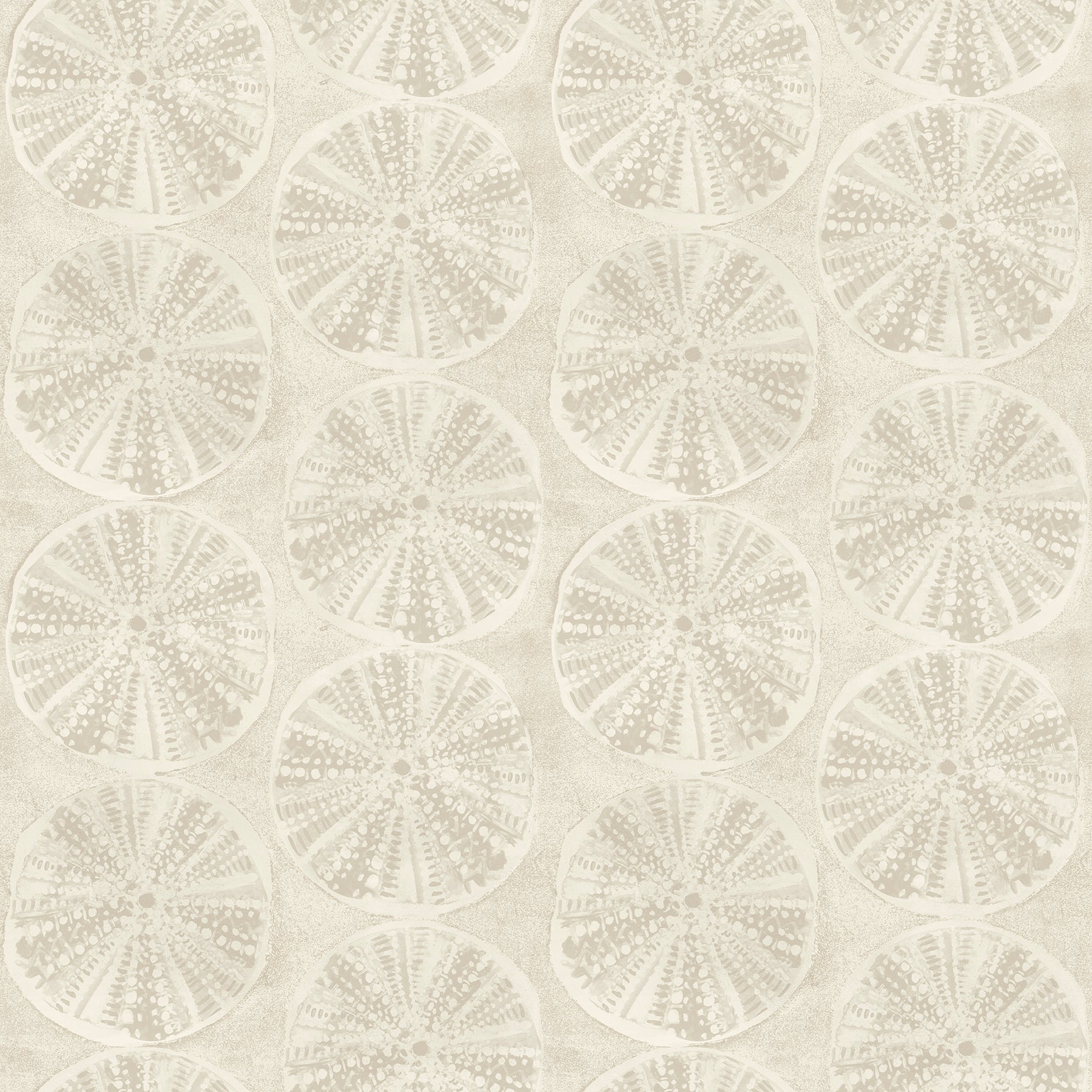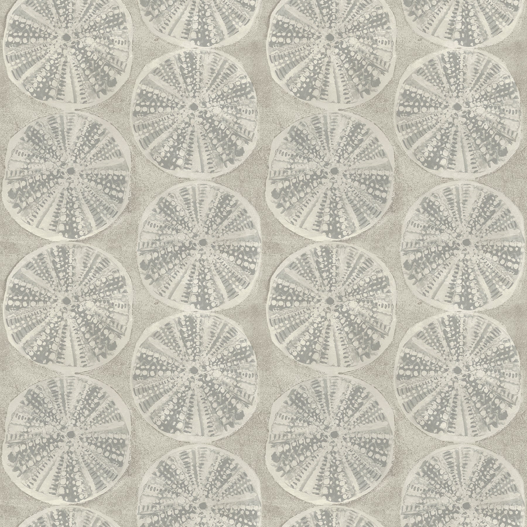 Chic and contemporary, this gorgeous coastal wallpaper brings sand dollars to the forefront! The rounded medallions feature a subtle star, all the details inked in various shades of grey. Sea Biscuit is a prepasted, sure strip wallpaper.