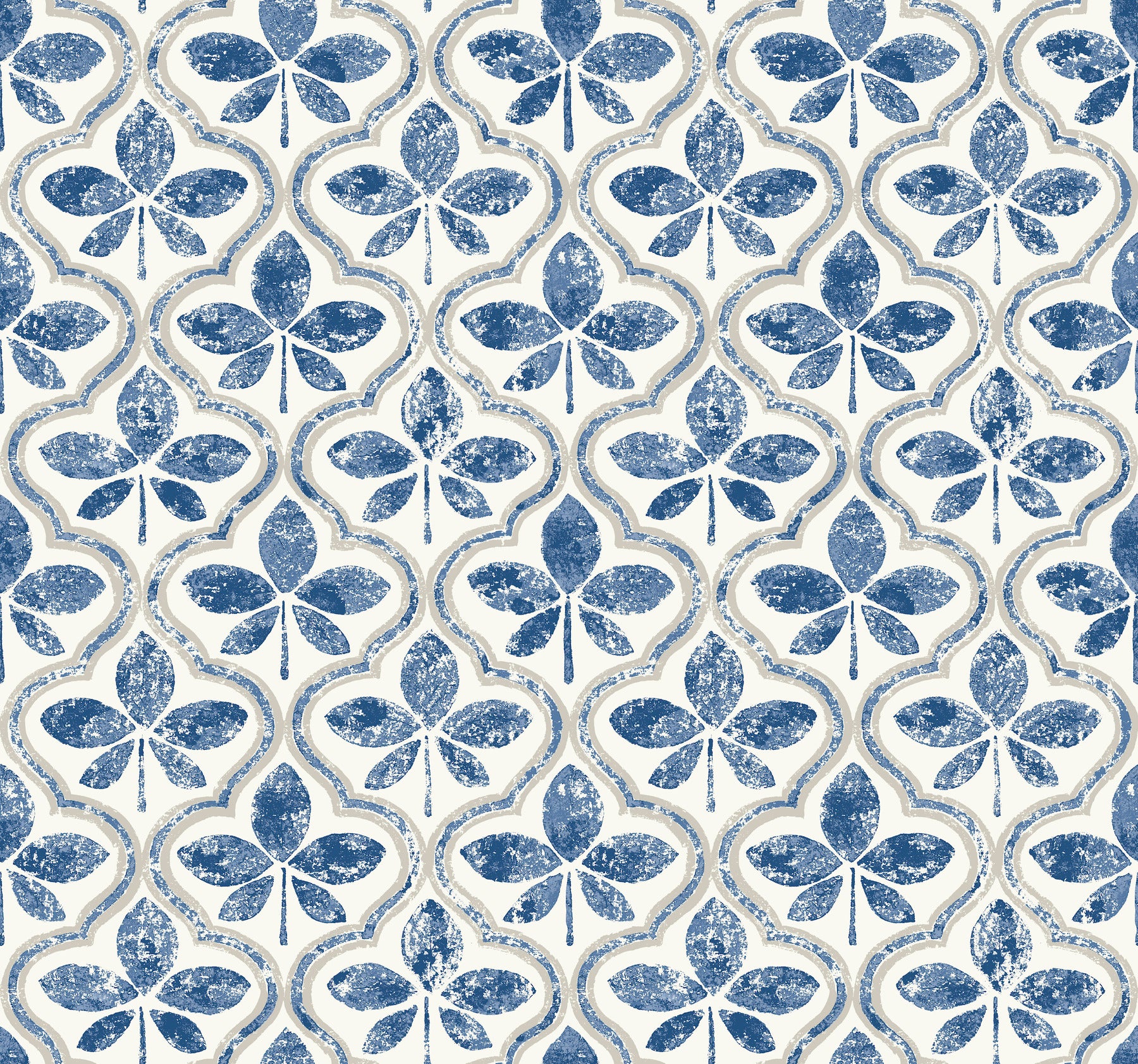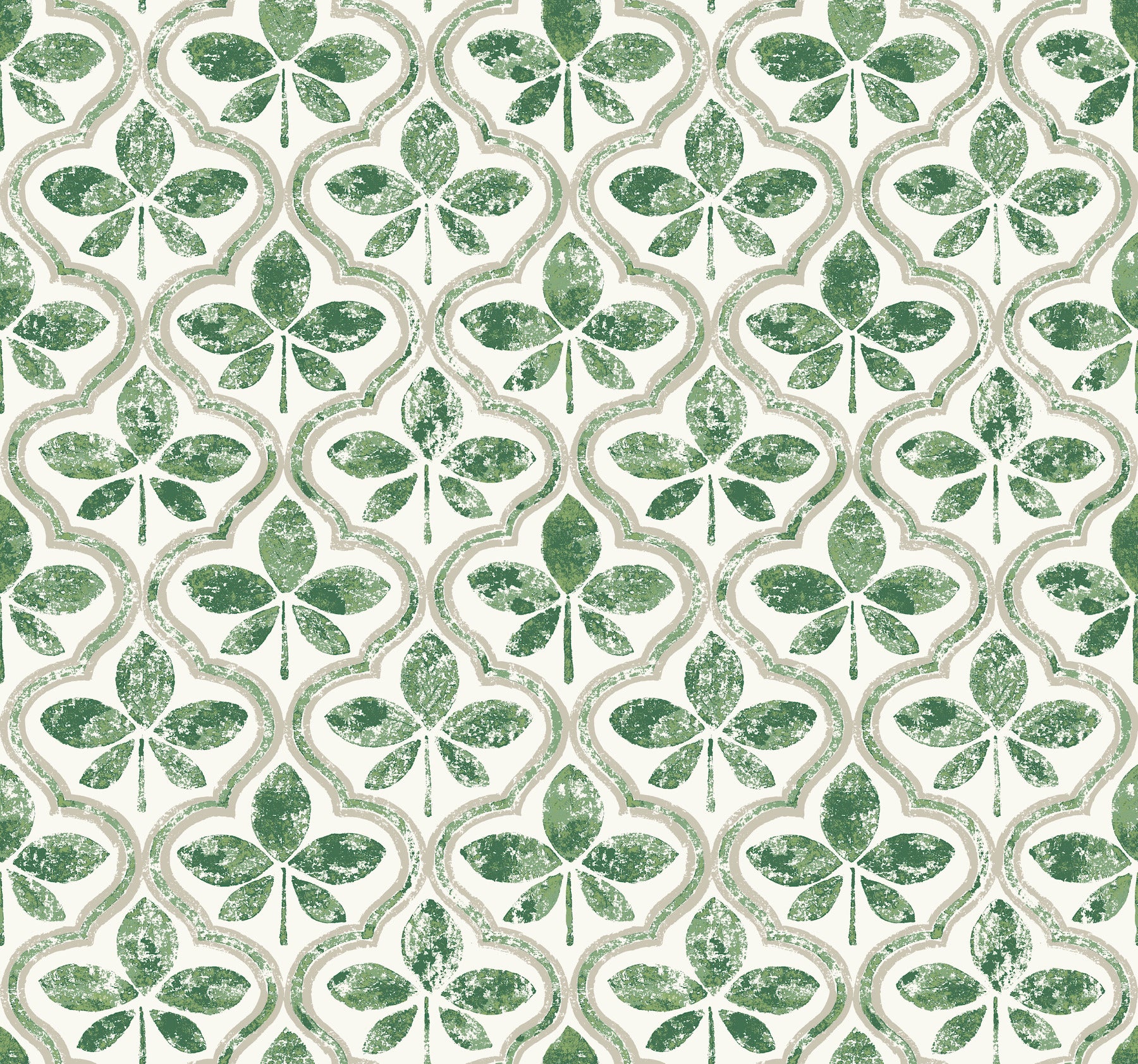 A five-leaf stem is captured in the ogee tile, open patio style of pattern Sevilla. This Sevilla Wallpaper measures approximately 27 inches wide by 27 feet long, covering About 60.8 square feet per roll. Manufactured on SureStripô, a unique high performance substrate, this ultra-easy removable wallpaper is guaranteed easy to install and easy to remove; simply use water to activate.