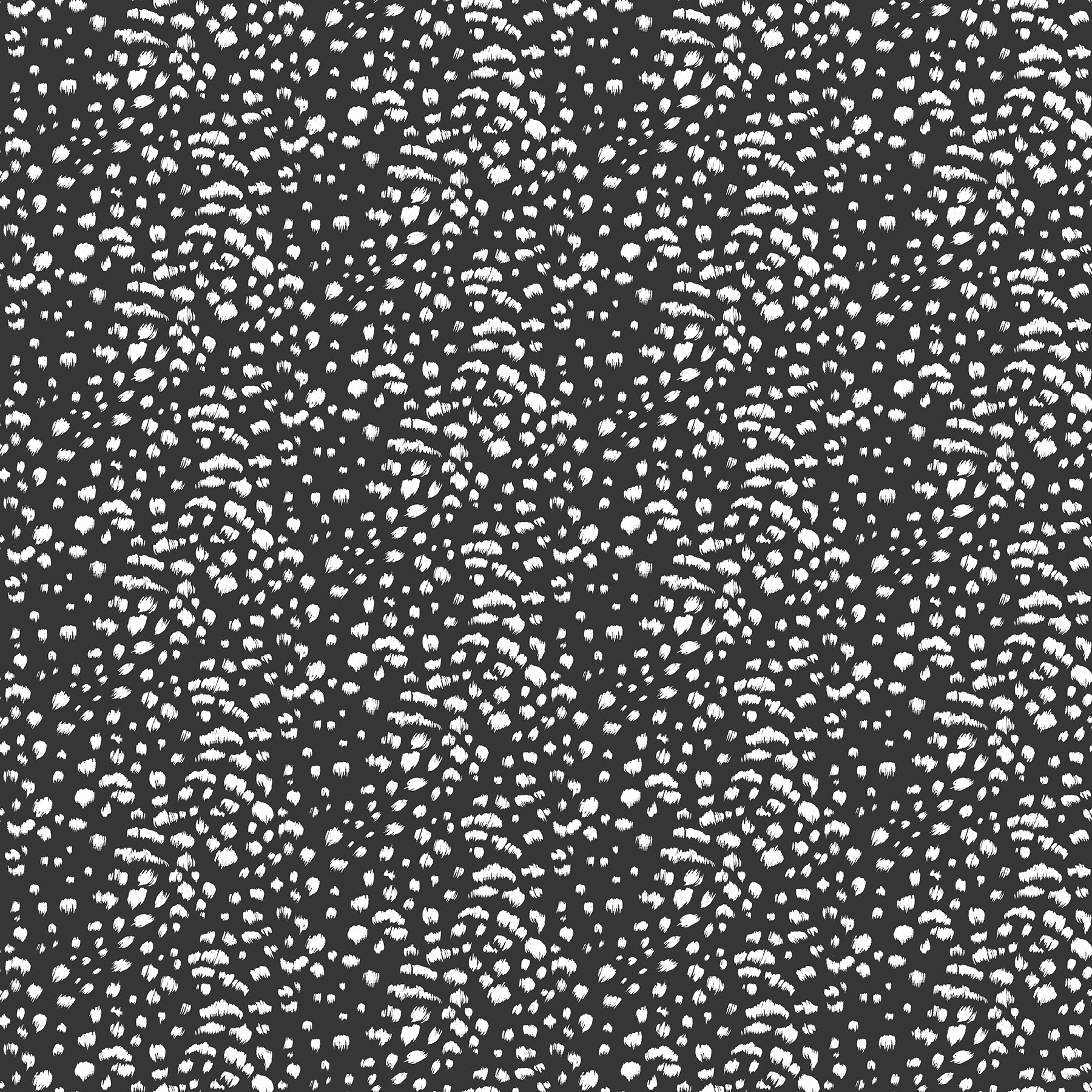 Bring an exotic look to your dÈcor with this cheetah print wallpaper. The iconic spotted design is densely packed ink in white and grey hues against a black backdrop. Ula is an unpasted, non woven wallpaper.
