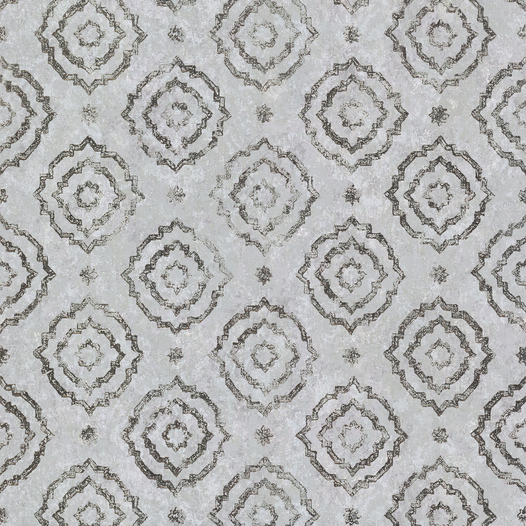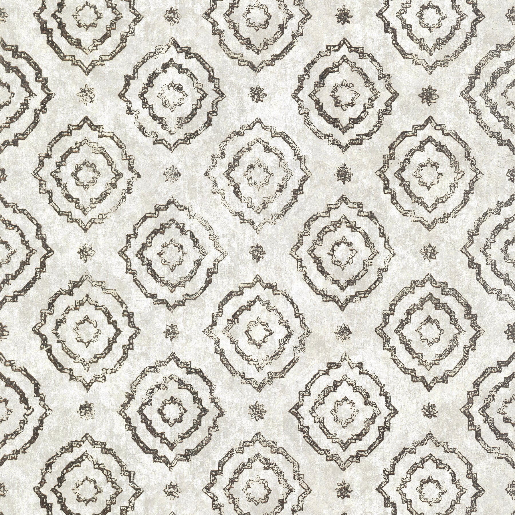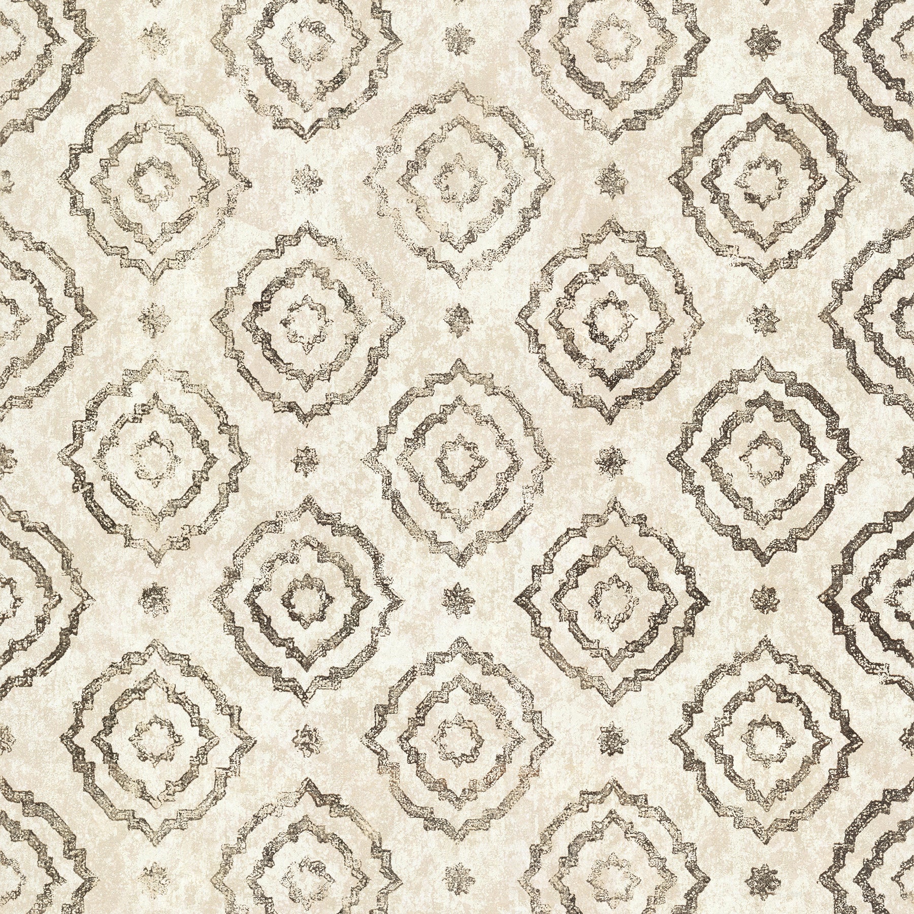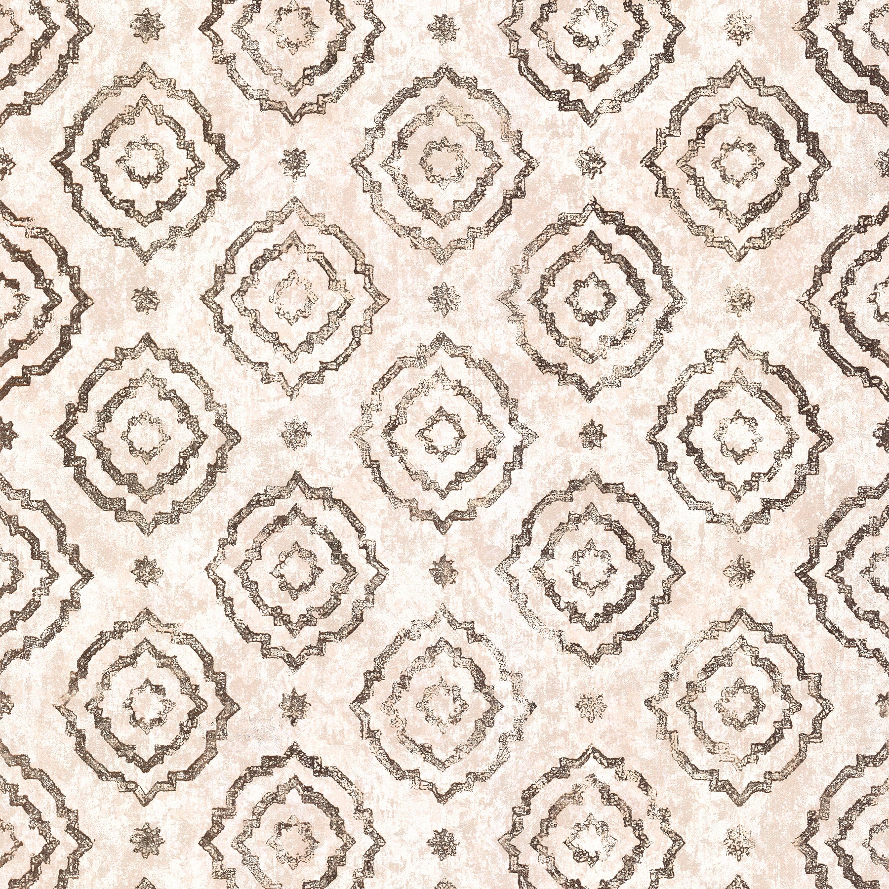 Add warmth and simple sophistication to your home with this geometric wallpaper. The mottled backdrop is covered with large and small star-like medallions. Uma is an unpasted, foil on non woven wallpaper.
