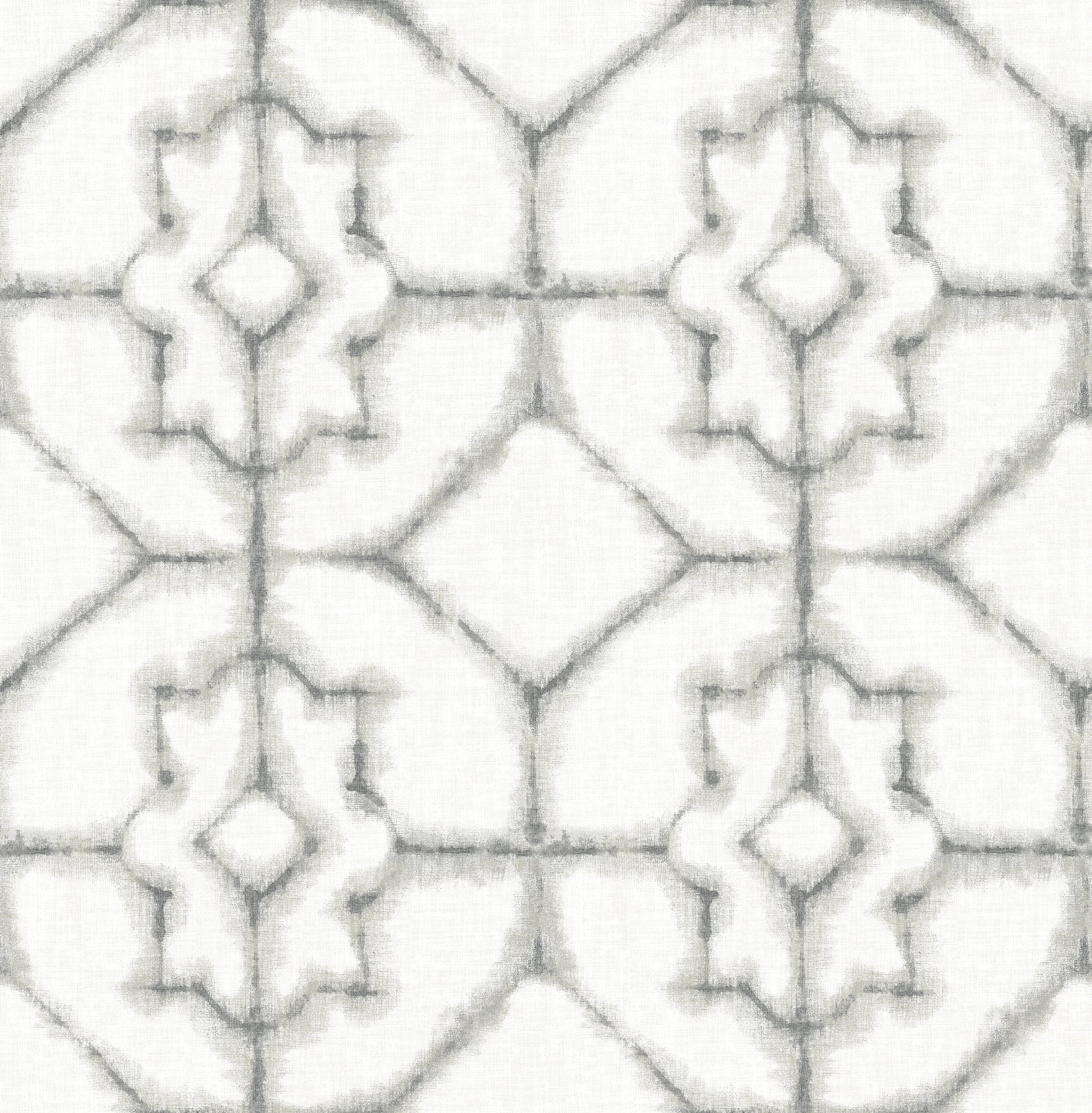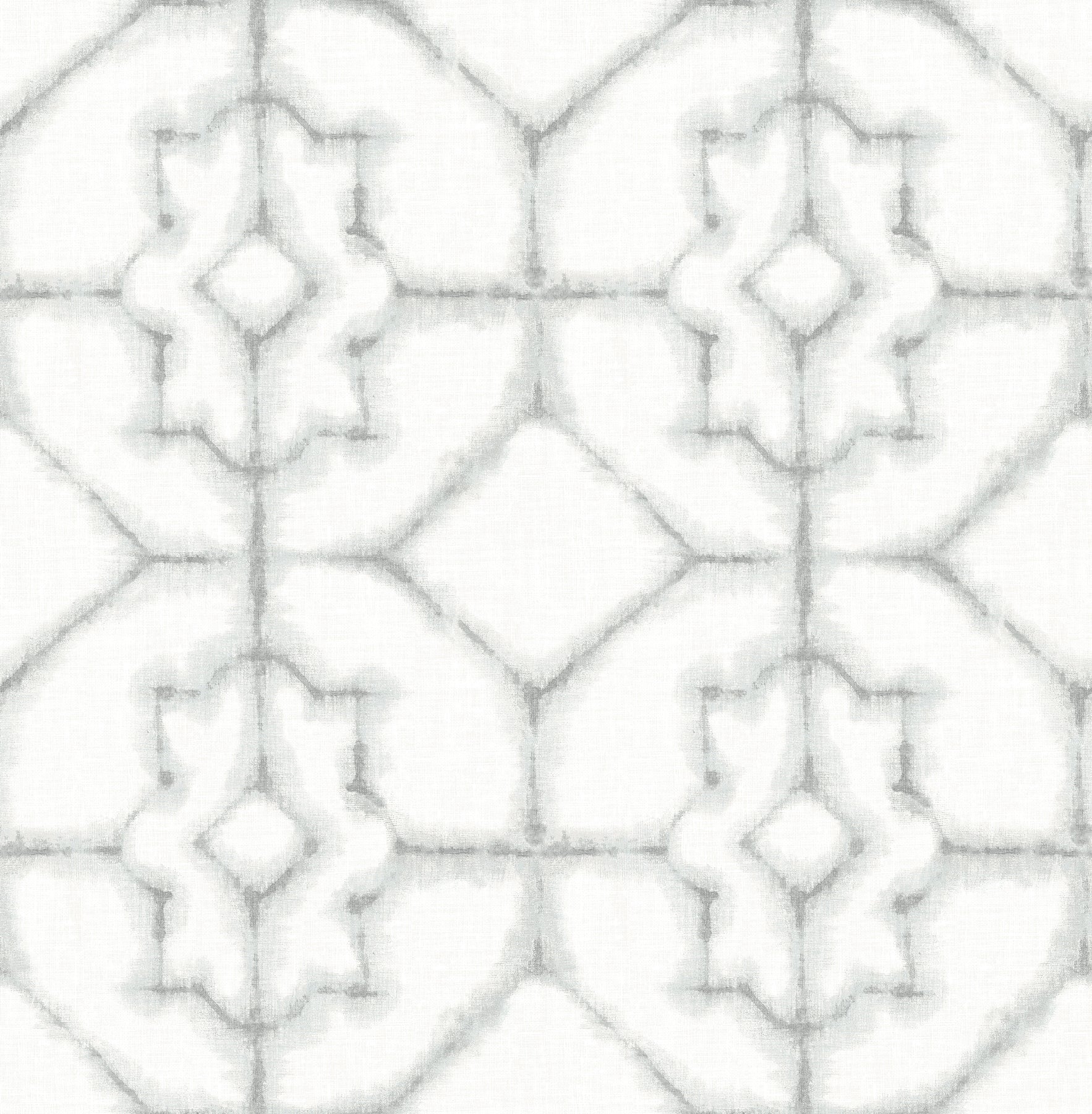 This shibori style wallpaper is a perfect modern print for walls. The grey geometric design features floral motifs for an added romantic effect. Verandah is an unpasted, non woven wallpaper.