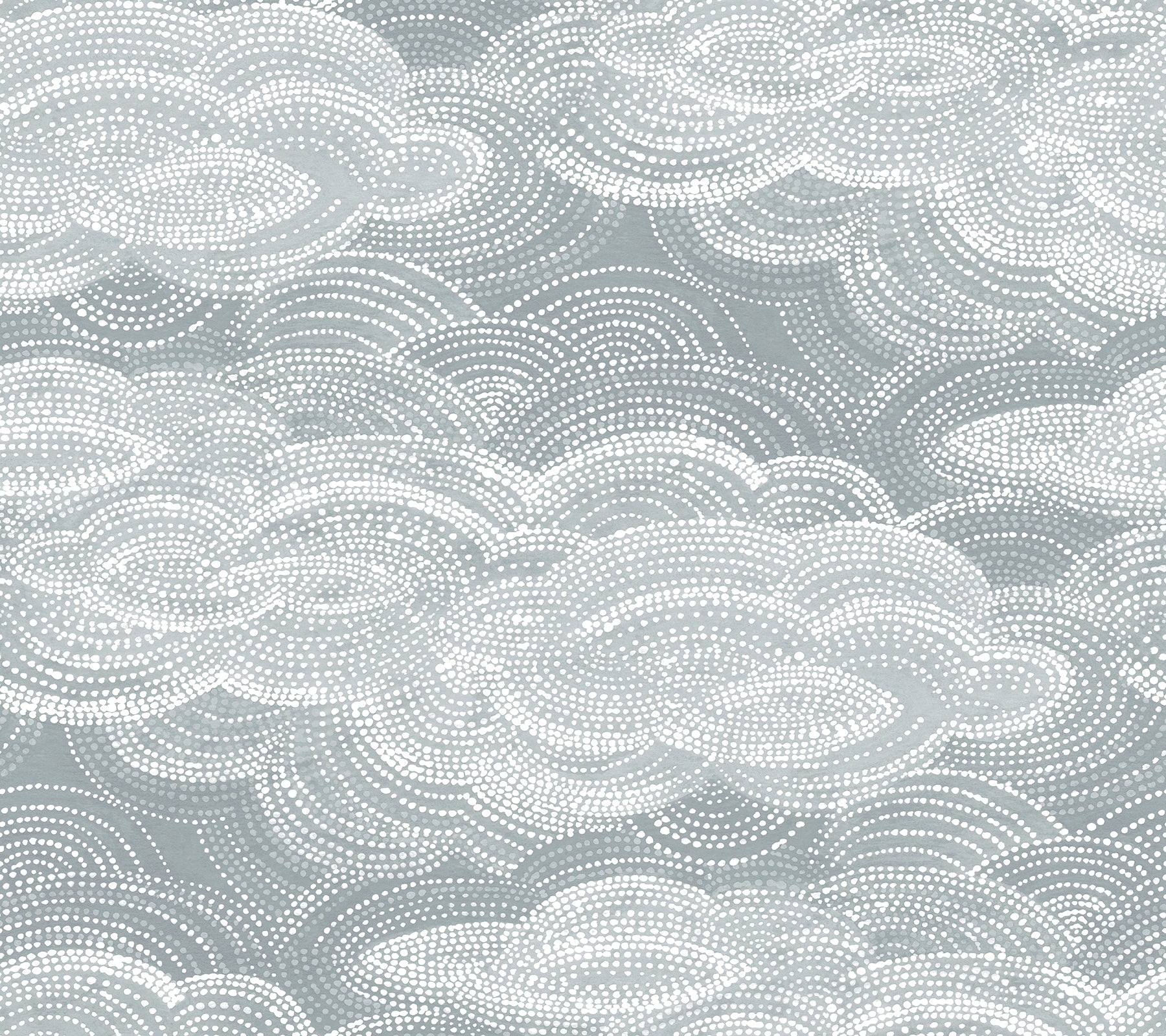 This ethereal cloud wallpaper will leave your head permanently in the clouds. Fluffy cumulus clouds are formed from dotted embellishments on top of swathes of cool blue-grey. Vision is an unpasted, non woven wallpaper measuring 27 inches wide by 27 feet long, covering approximately 60.8 square feet per roll.